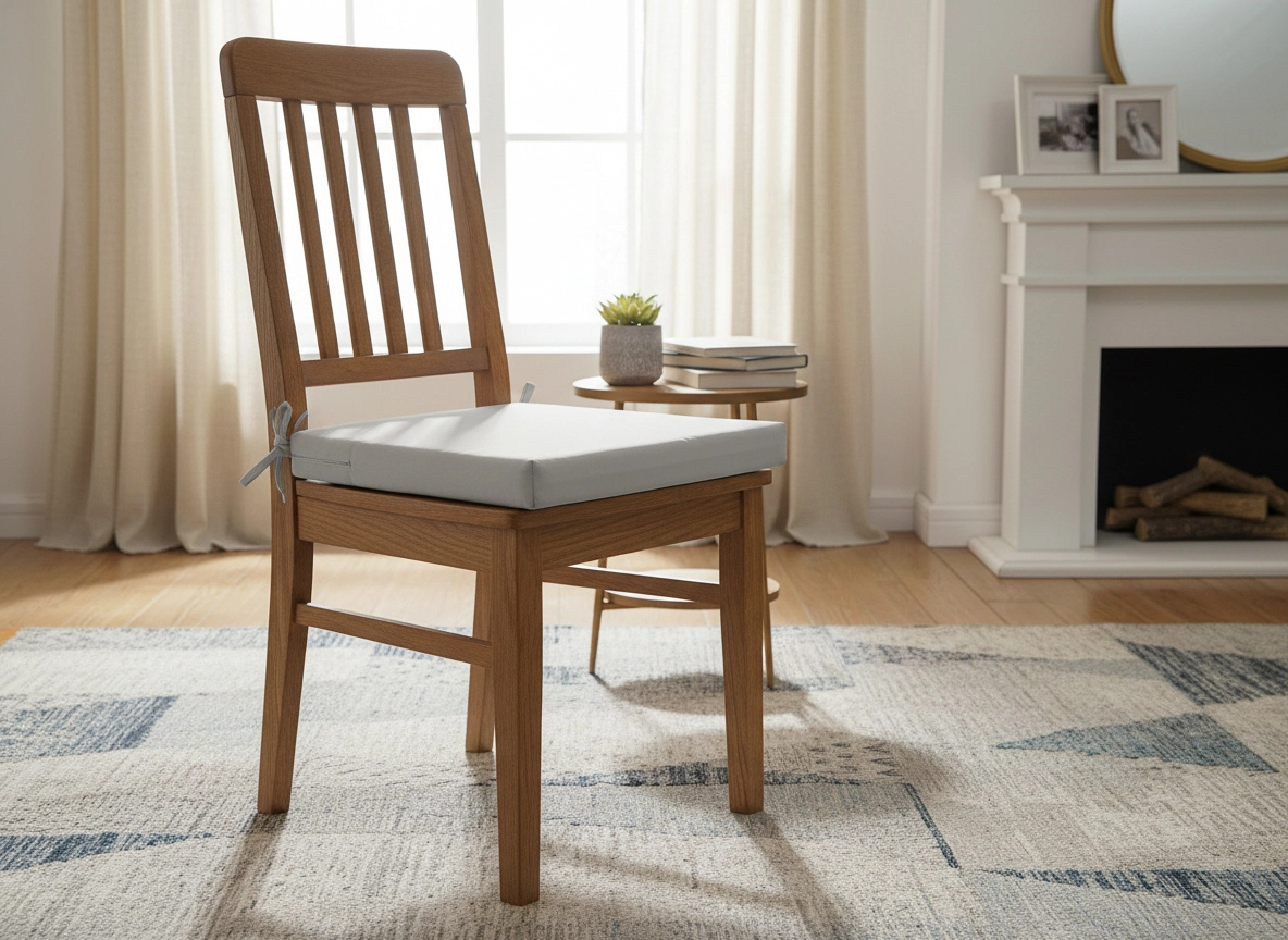Hynden er udstyret med stærke bindebånd til sikker fastgørelse på stolen og en praktisk lynlås for nem afmontering af betrækket. Den neutrale farve er let at kombinere med både træ- og metalstole og giver rummet et frisk udtryk med det samme.