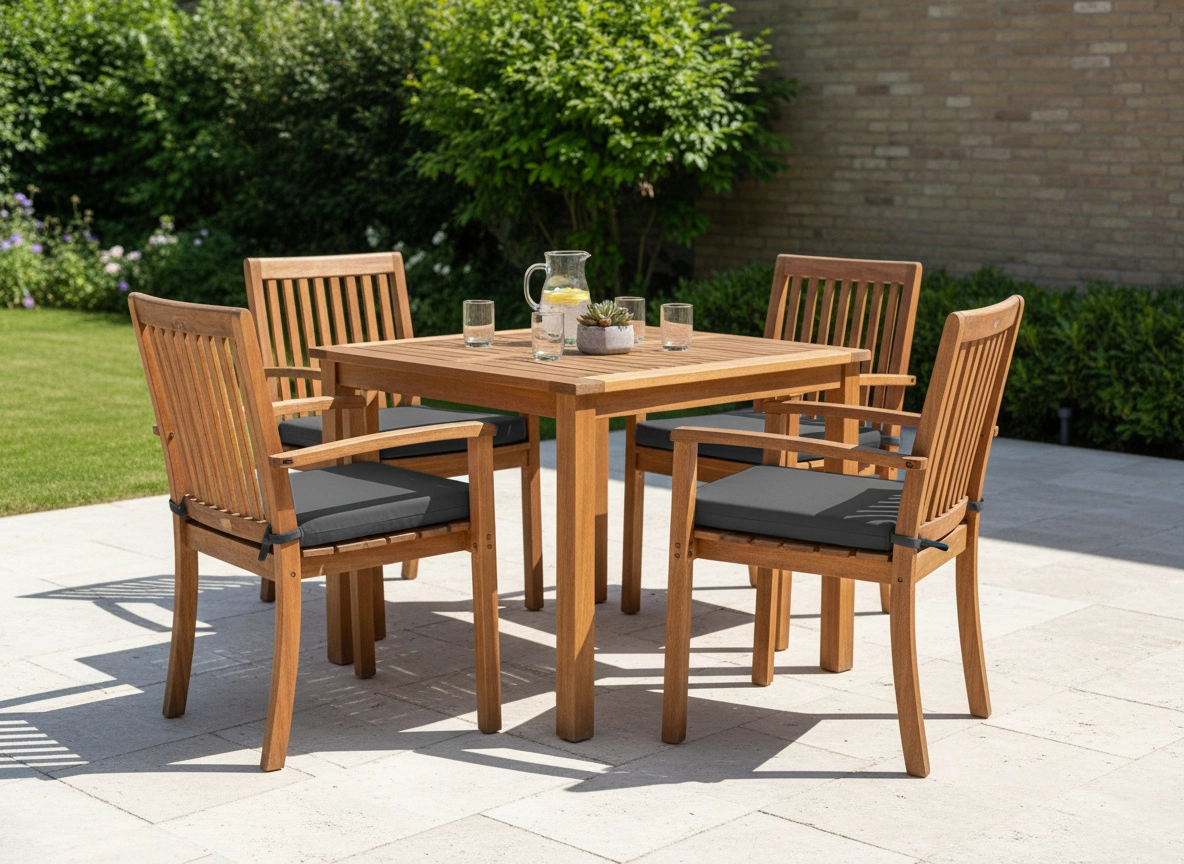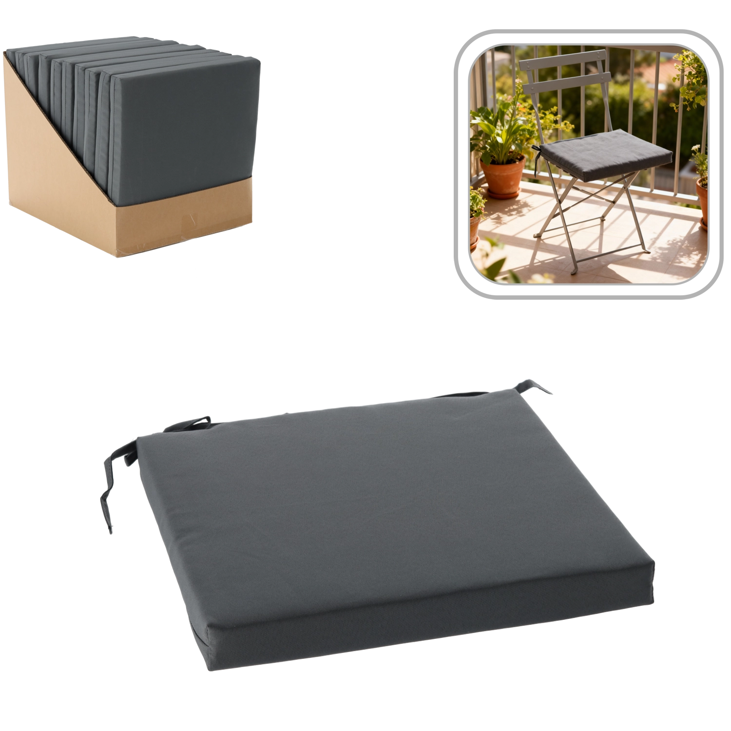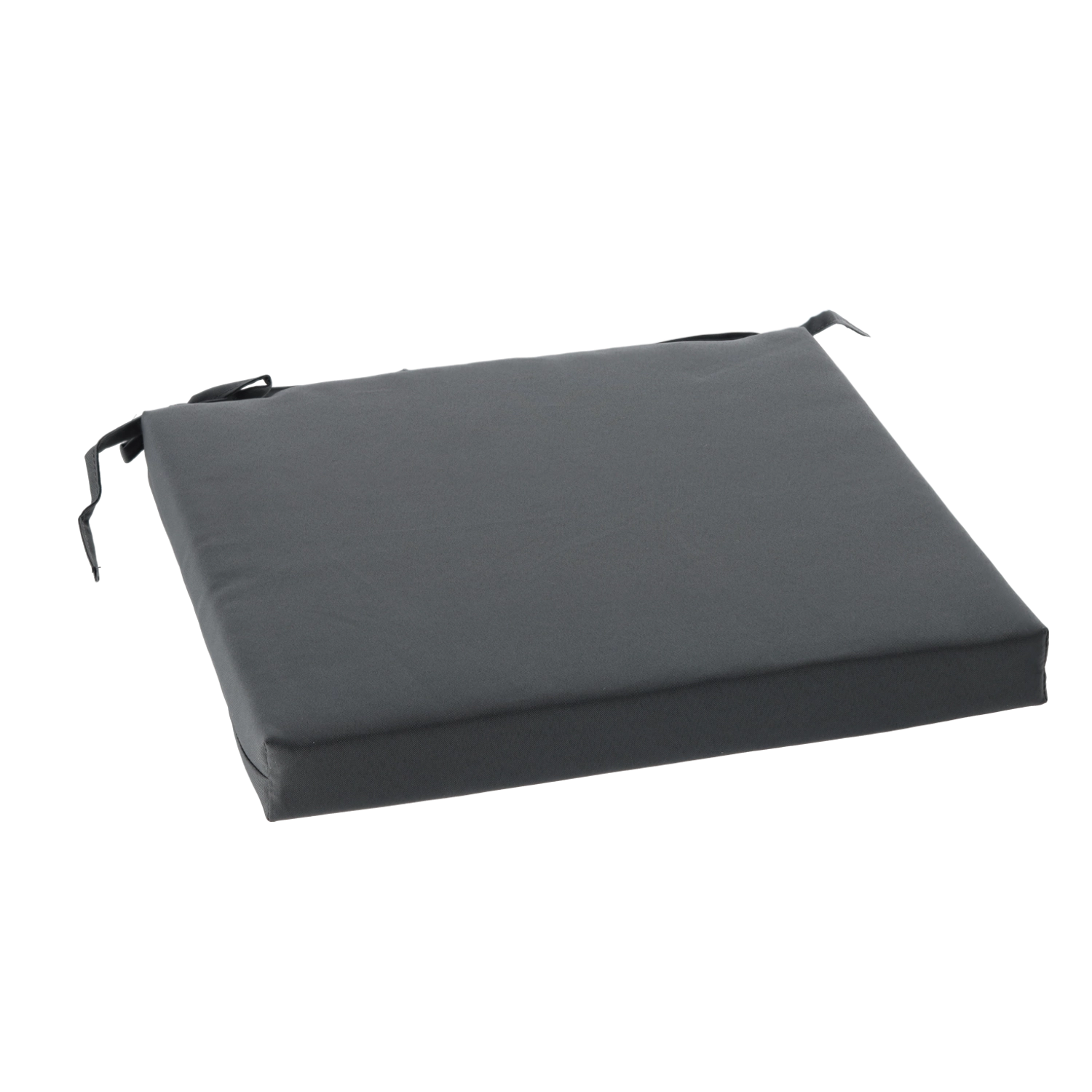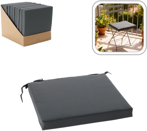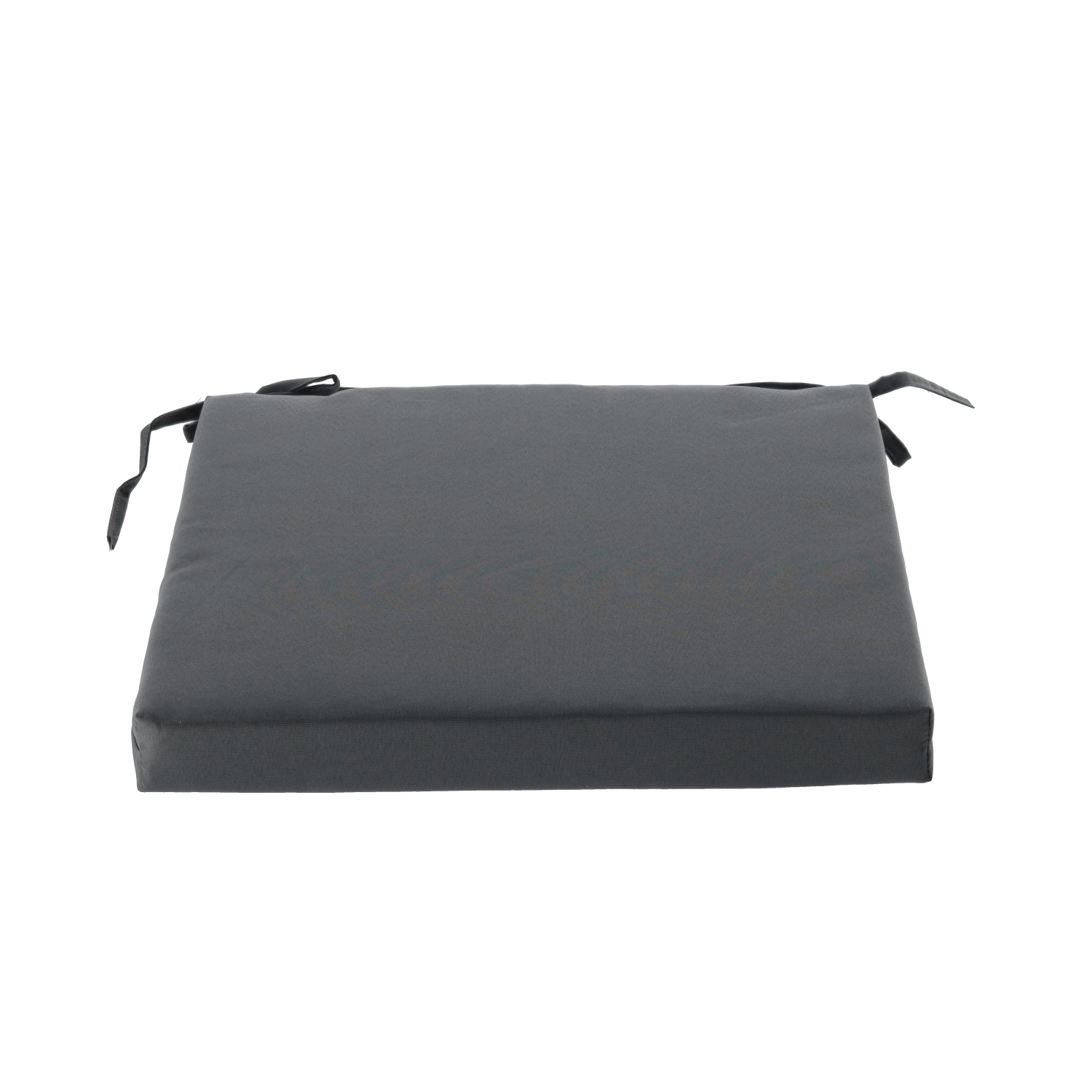 Opgrader siddepladsen med en universalhynde 40 × 40 × 5 cm i elegant mørkegrå. Det stænktætte tekstil og den behageligt bløde polstring sikrer komfort i daglig brug både inde og ude. Integrerede snore gør det hurtigt og sikkert at fastgøre på de fleste stole.