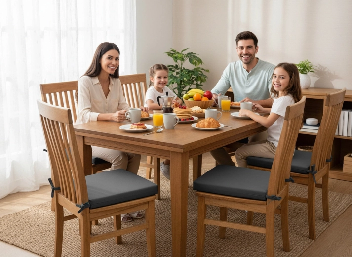 - Blød, elastisk fyldning – behagelig siddestilling til både måltider og afslapning.