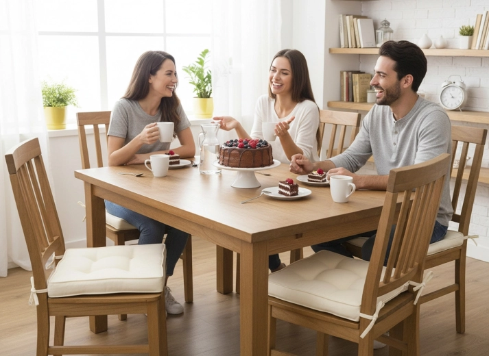 Den kraftige 6 cm polstring med polyesterfiberfyld giver en blød, men stabil siddekomfort – til både måltider, arbejde og afslapning.