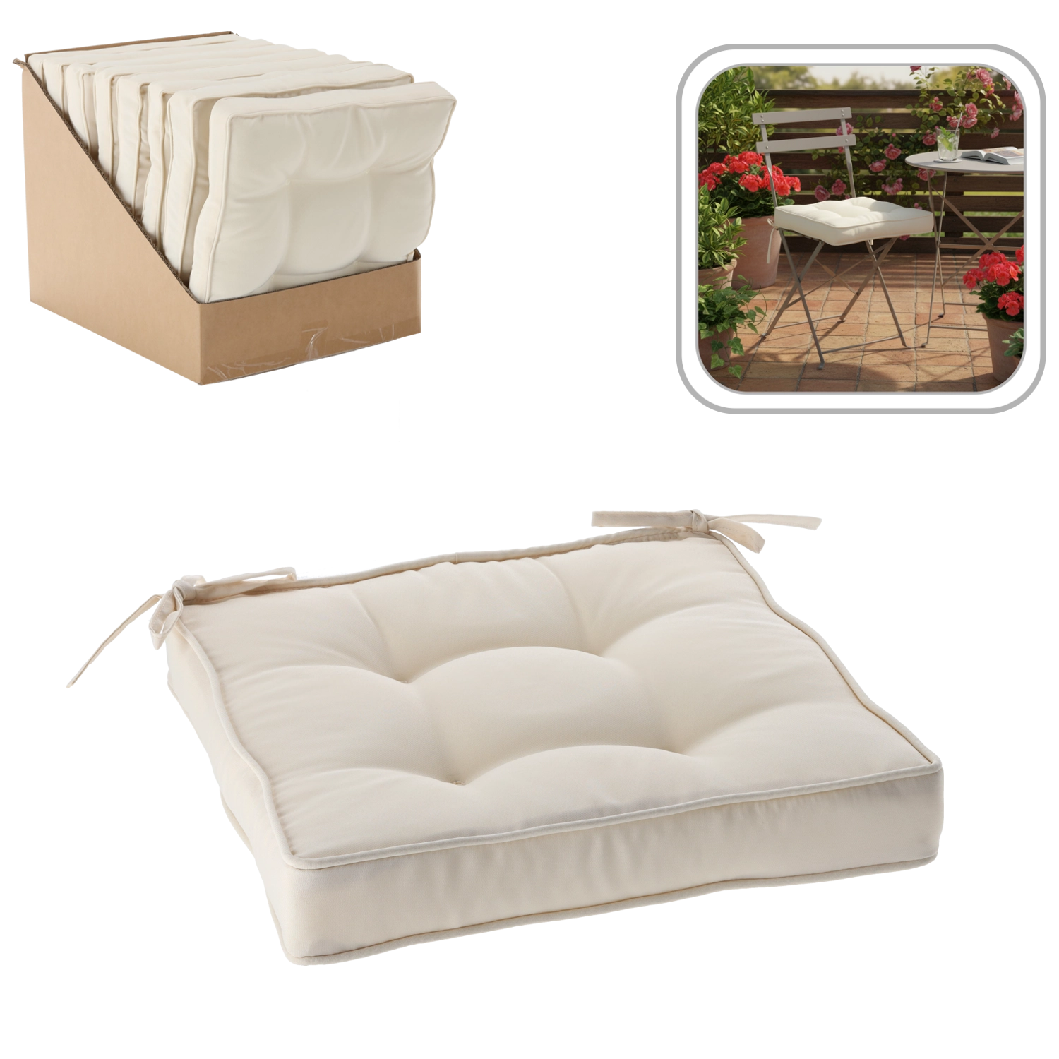 Den beige polstrede hynde frisker straks stolens udseende op og gør enhver siddestund mere behagelig. Takket være den neutrale farve passer den godt i de fleste interiører samt på altan eller terrasse. Fire quiltede punkter hjælper med at holde fyldet på plads og sikrer et elegant look uden deformation.