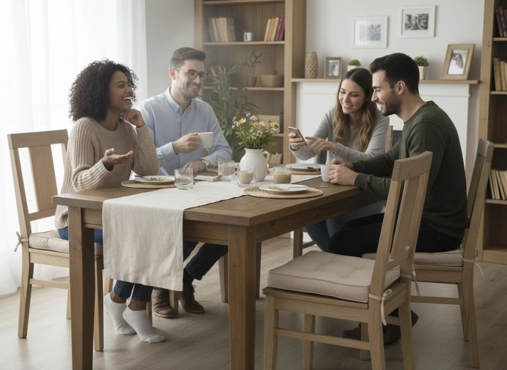 Det kraftige lag polyesterfiberfyld giver en blød, men stabil siddeoplevelse hele dagen – ideelt til både spisning og arbejde.