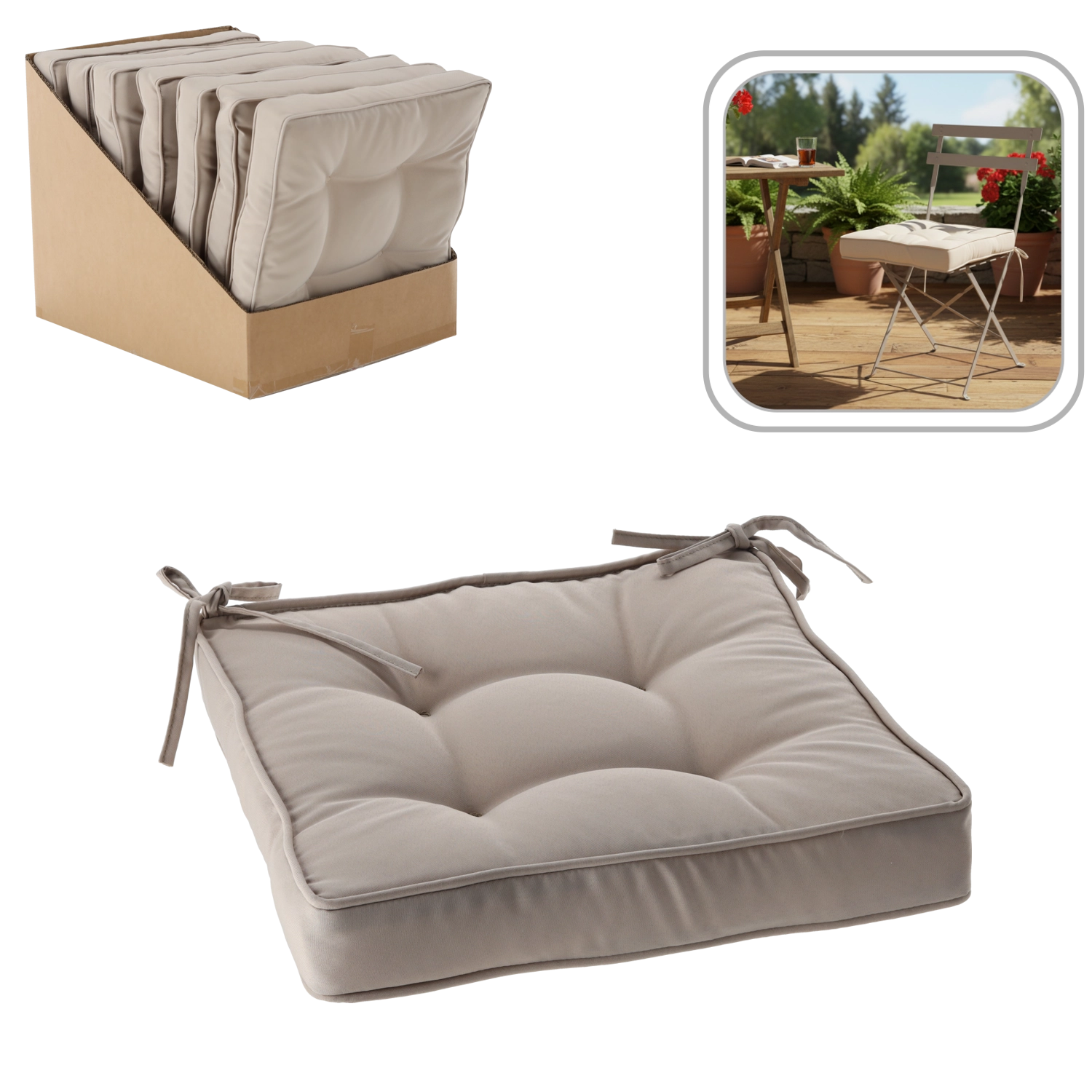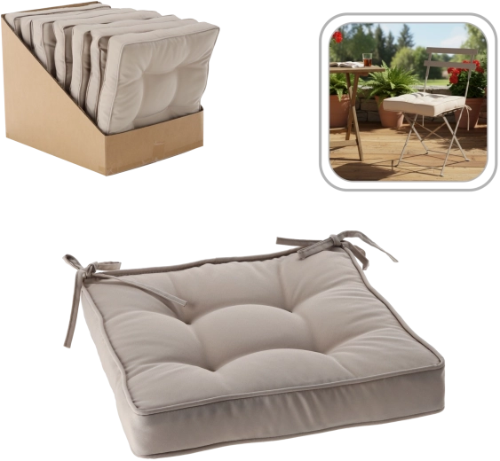 En stilfuld og behagelig stolehynde i en alsidig naturtone giver dit hjem hygge og forbedrer komforten ved siddemøbler. Det bløde polyesterfiber indeni og en tykkelse på 6 cm giver behagelig støtte til daglig spisning, arbejde og afslapning.