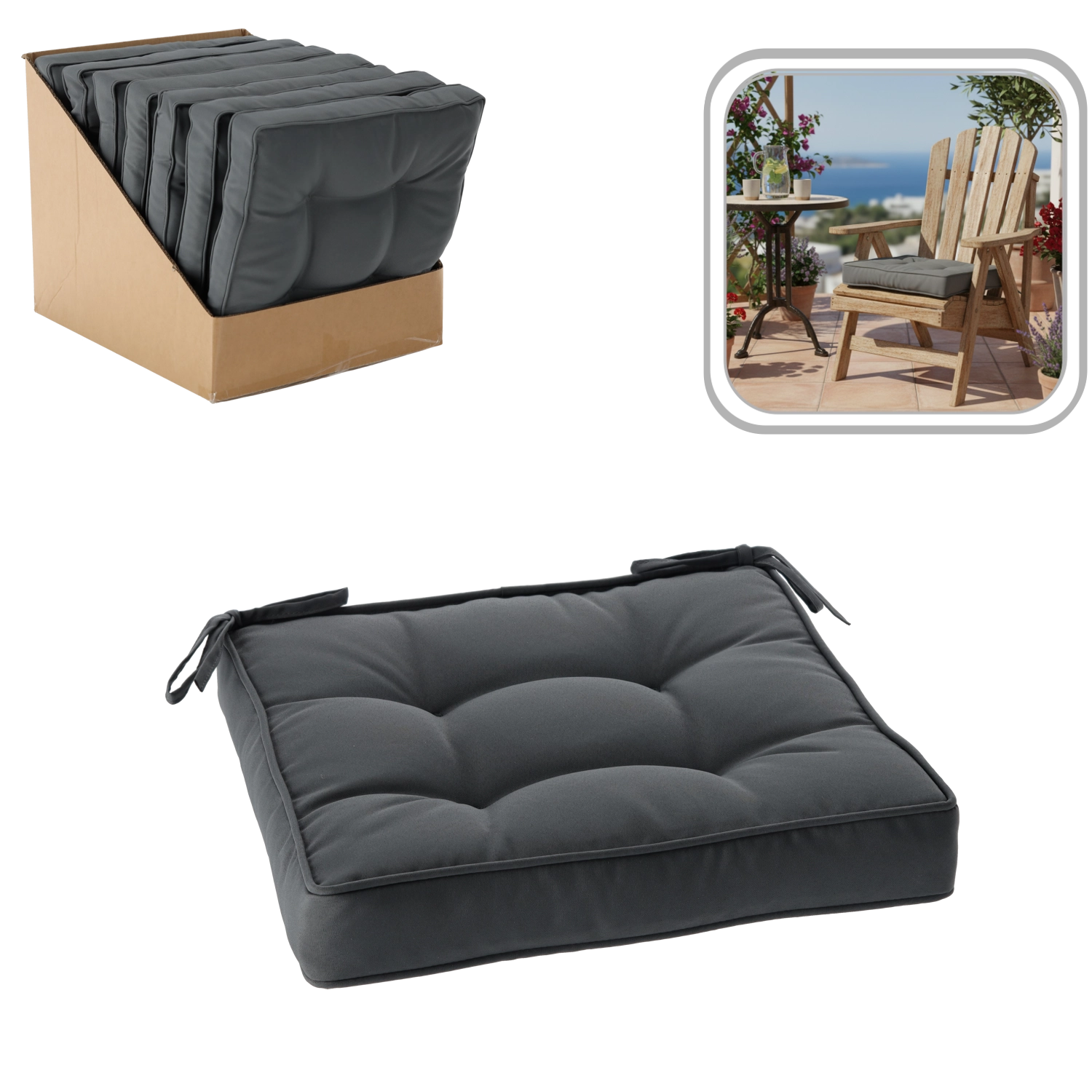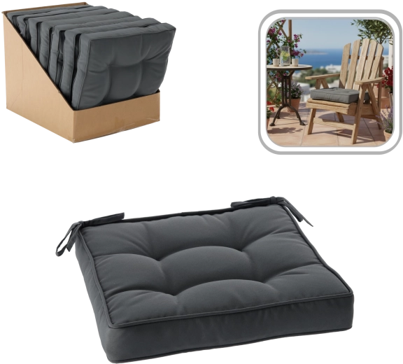 Frisk spisestuen, køkkenet eller terrassen op med en praktisk hynde, der kombinerer et moderne udtryk og daglig komfort. Den mørkegrå nuance passer let til de fleste stilarter og materialer, fra træ til metal, og er samtidig meget nem at vedligeholde.