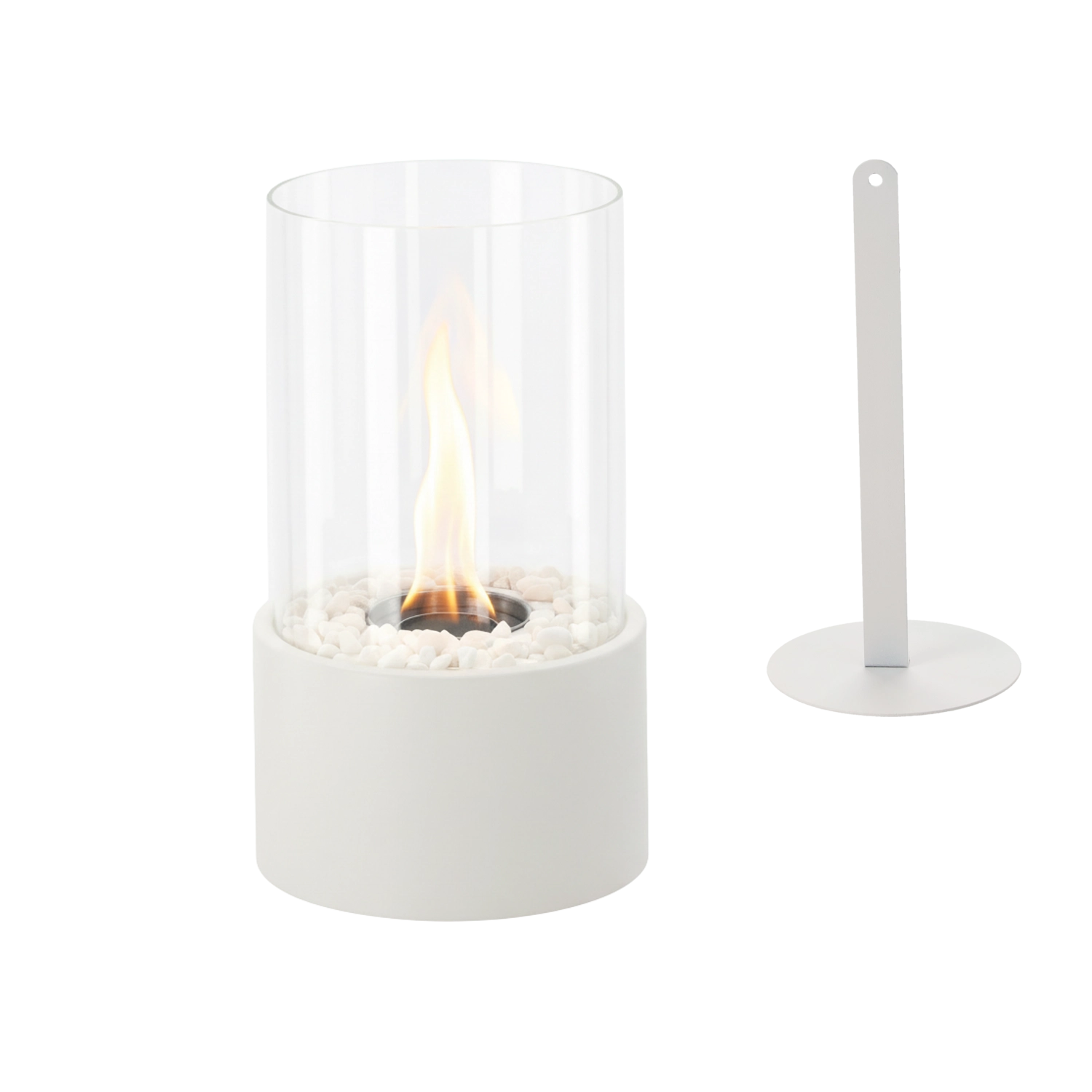 Den rene hvide æstetik fremhæver enhver indretningsstil – fra skandinavisk til moderne minimalisme. De kompakte mål 16 × 16 × 28 cm gør det muligt at placere biopejsen selv i mindre rum og nyde flammens rolige, beroligende skær.