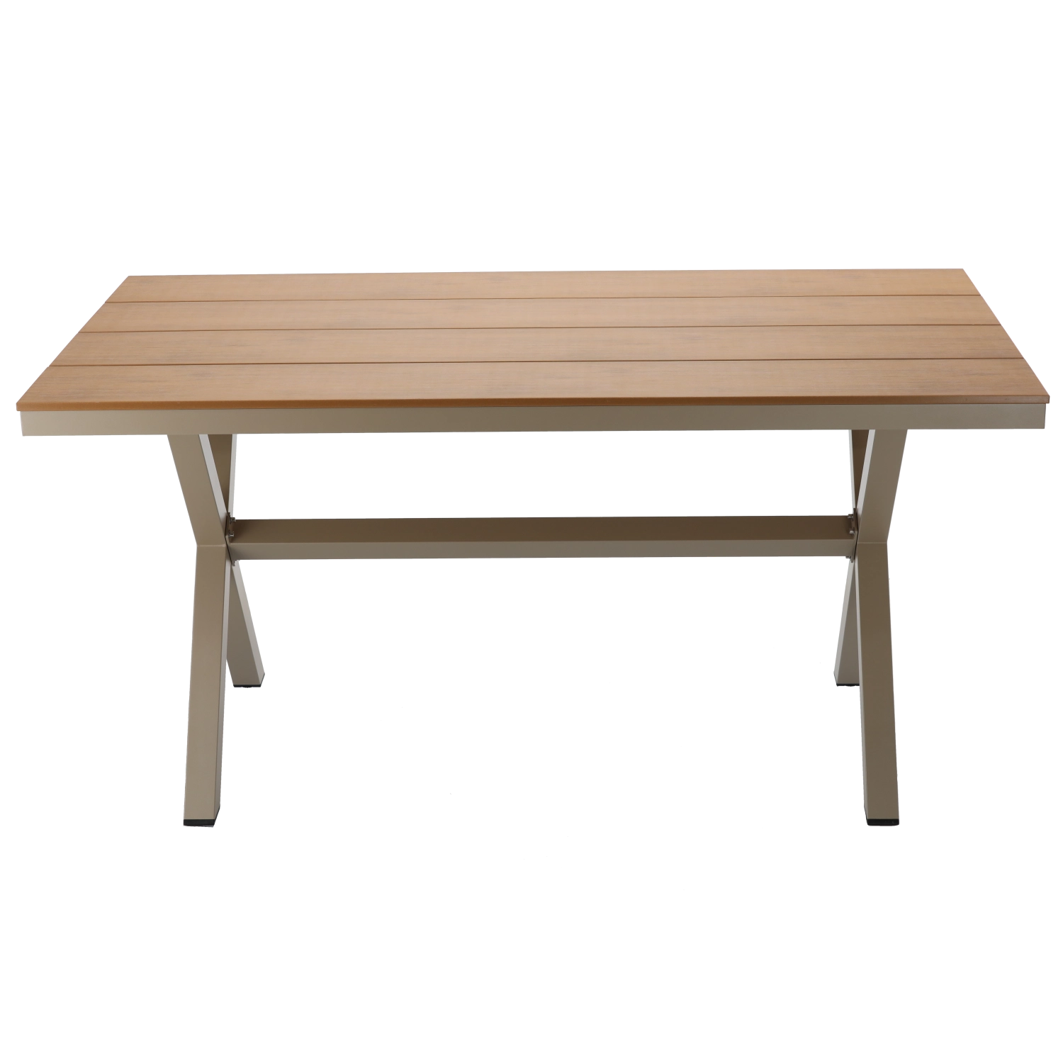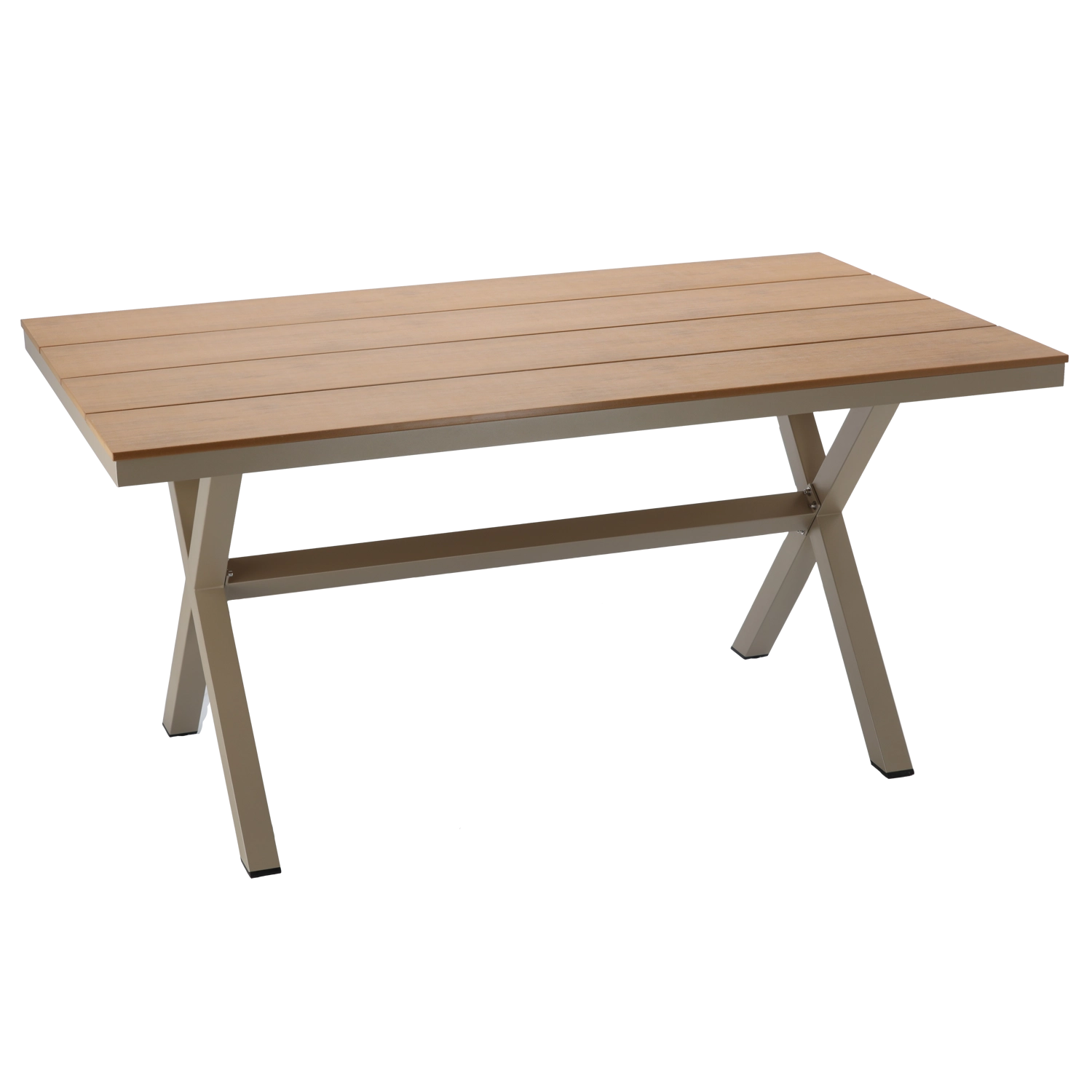 Det moderne aluminiumsbord i beige er designet til udendørs brug – det er let at flytte, men samtidig stabilt og takket være pulverlakeringen yderst modstandsdygtigt over for vejrpåvirkninger. Bordpladen i kompositmateriale med trædekor giver trælook uden krævende vedligeholdelse.