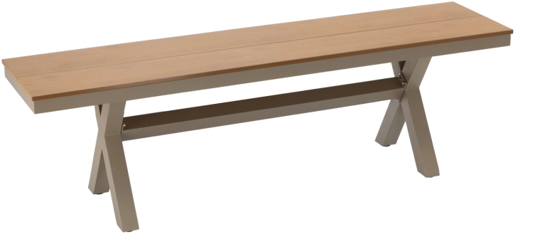 Nyd komfort og stil med en bænk, der tåler både regn og sol. Den robuste aluminiumsramme med pulverlakering er modstandsdygtig over for korrosion og mekanisk slid, mens sædet i komposit/træplast giver udseendet af naturligt træ uden behov for regelmæssig renovering. Maks. belastning op til 200 kg sikrer sikker og behagelig brug.