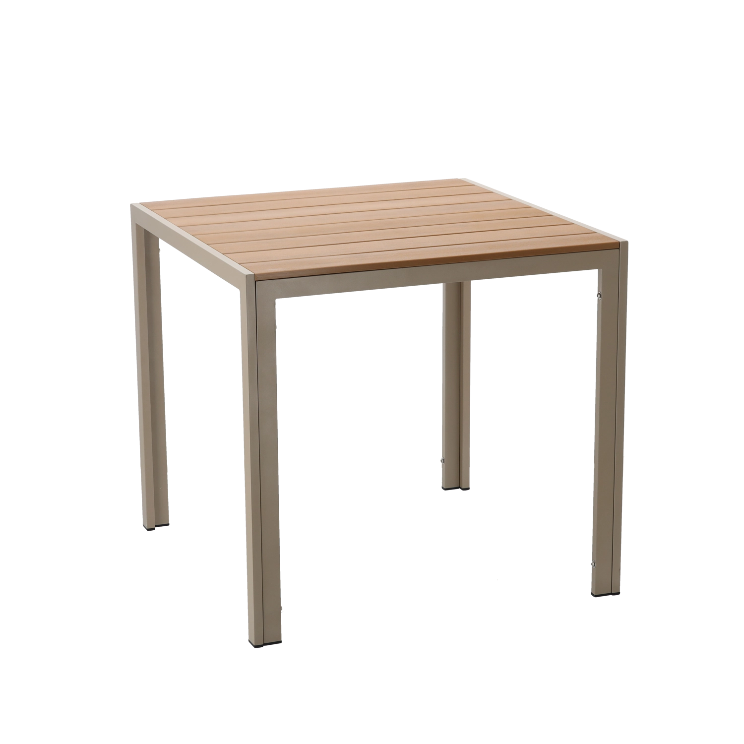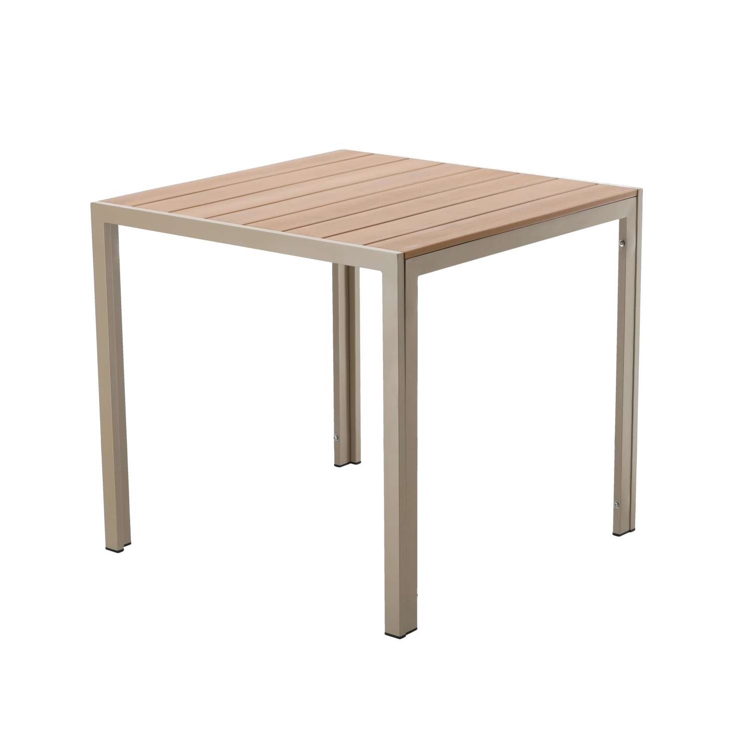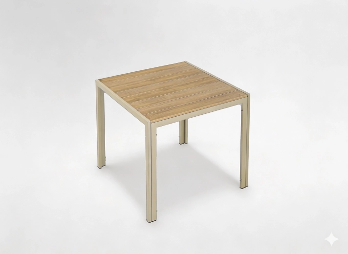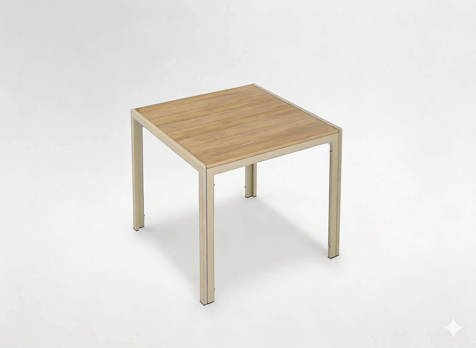 Takket være det kvadratiske format 80 × 80 cm er bordet perfekt til mindre arealer og hyggelige siddemiljøer. Den stabile aluminiumsramme samt kvalitetsforbindelser med svejsninger og rustfri skruer sikrer lang levetid og styrke ved daglig brug.