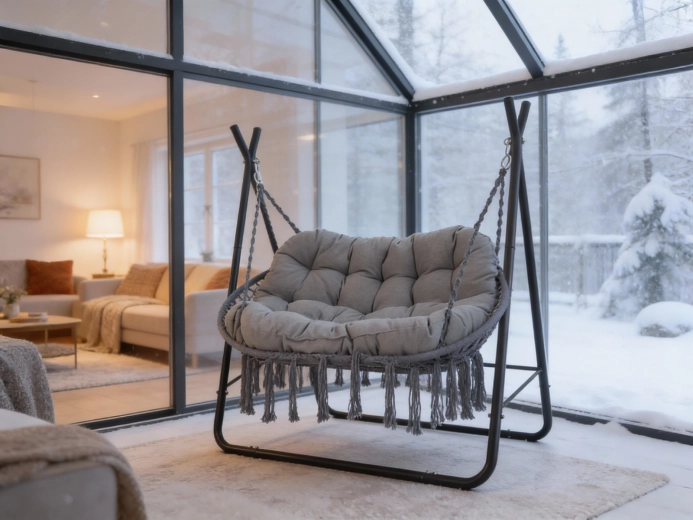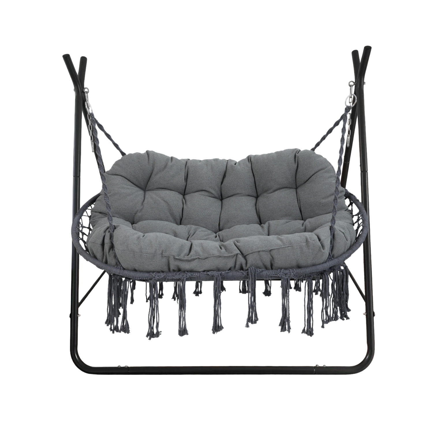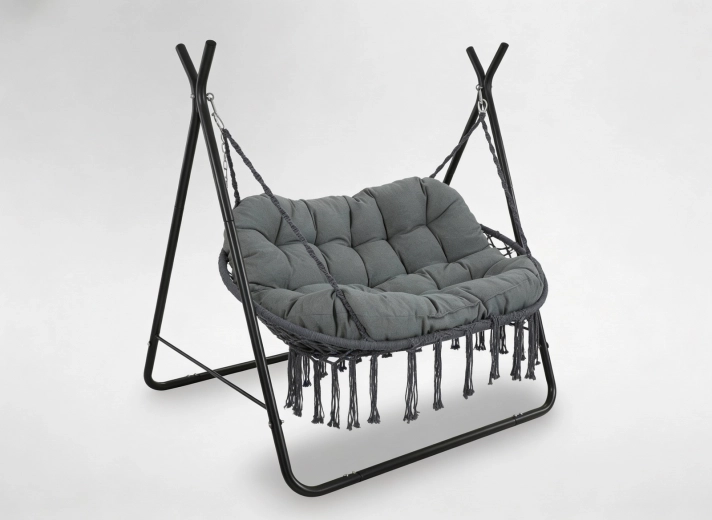 Takket være tosæders-designet kan du nyde den blide gyngen alene eller sammen. I pakken medfølger karabiner og kæder for nem ophængning af kurven på stativet. Den neutrale antracit passer perfekt til både moderne og naturlige udemiljøer samt vinterhaver.