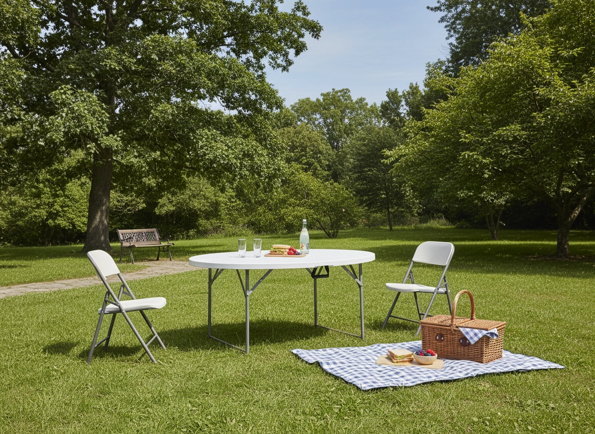 Takket være den sammenklappelige konstruktion kan bordet hurtigt gøres klar og opbevares. Det er ideelt til bryllupper, fester, buffeter, festivaler og forretningsmøder – det sætter flere personer behageligt og skaber en indbydende ramme for spisning og samtale.