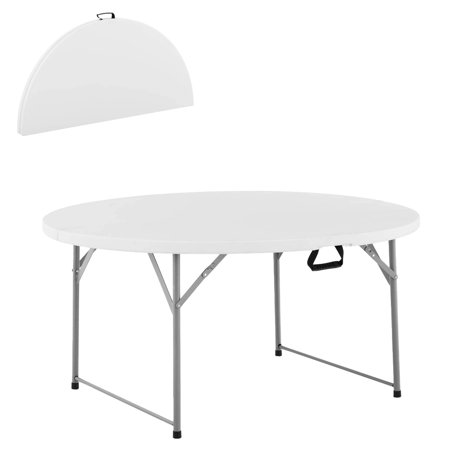 Dette alsidige runde bord kombinerer holdbarhed og mobilitet. Bordpladen i HDPE er modstandsdygtig over for vejrlig, er let at rengøre og egner sig til indendørs og udendørs brug. Den robuste stålramme med pulverlakering sikrer stabilitet selv ved fuld belastning.