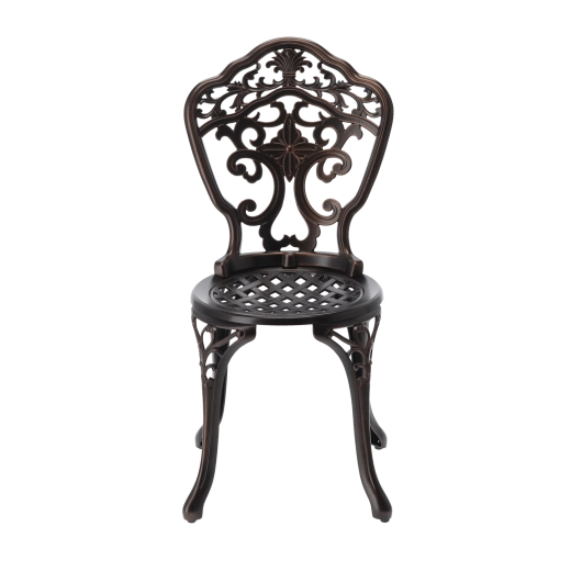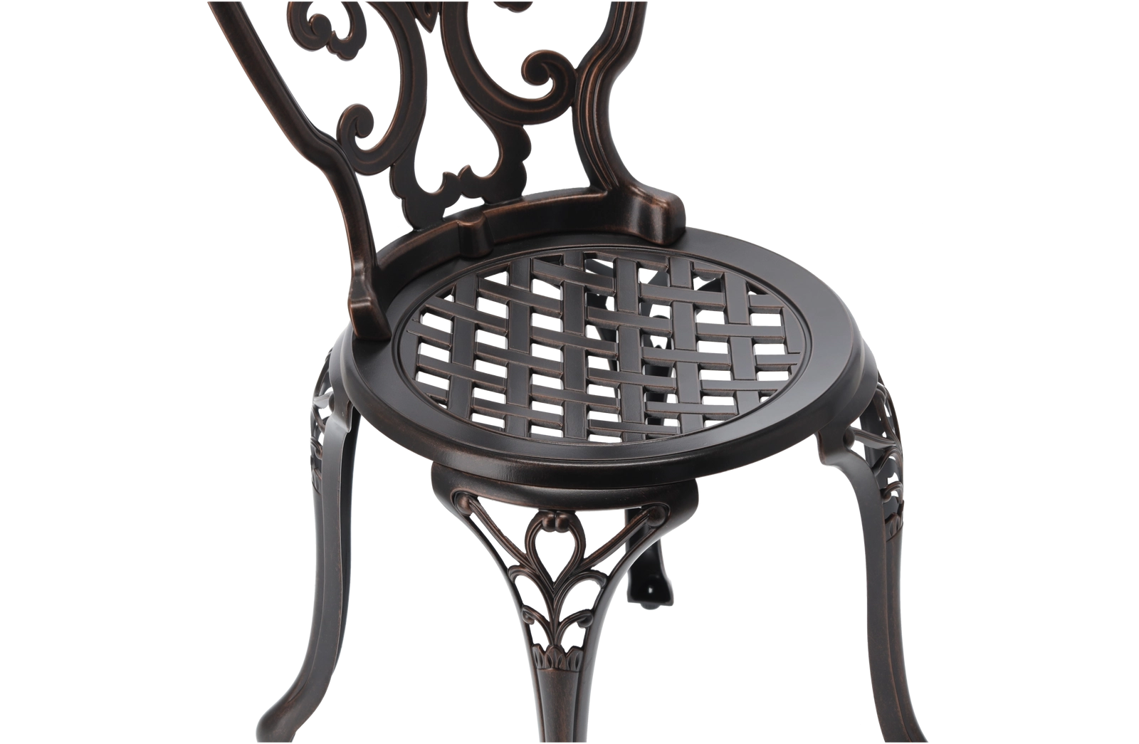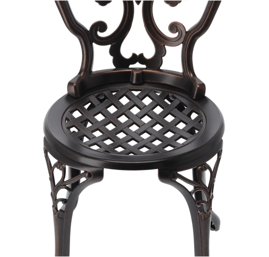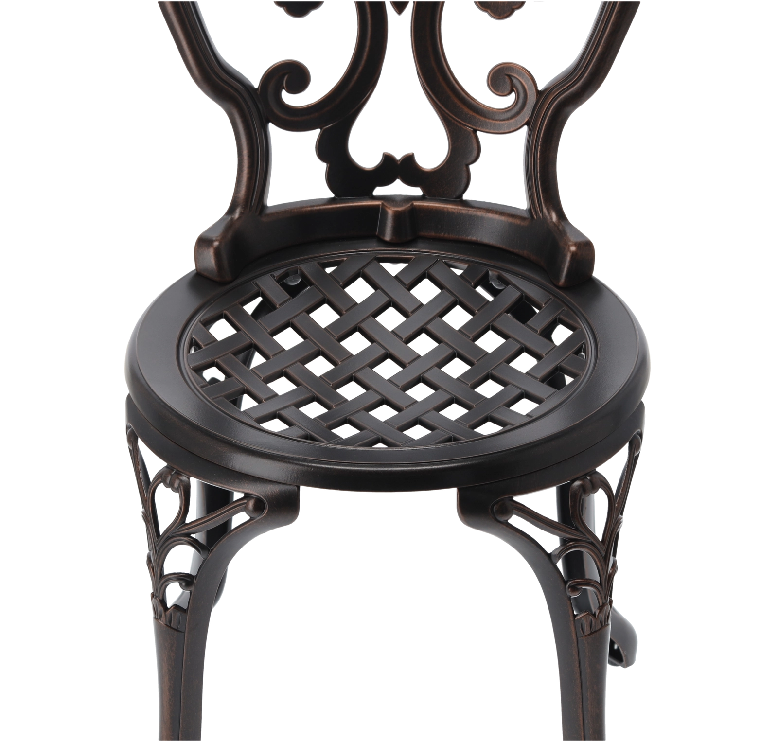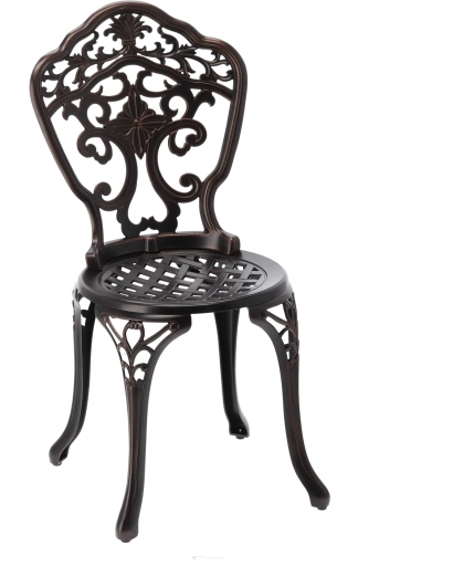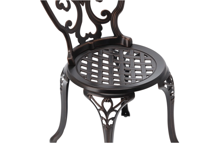 Stolen er fremstillet af massive aluminiumsstøbninger, hvilket gør den stærk, stabil og rustfri. Ideel til daglig udendørs brug.