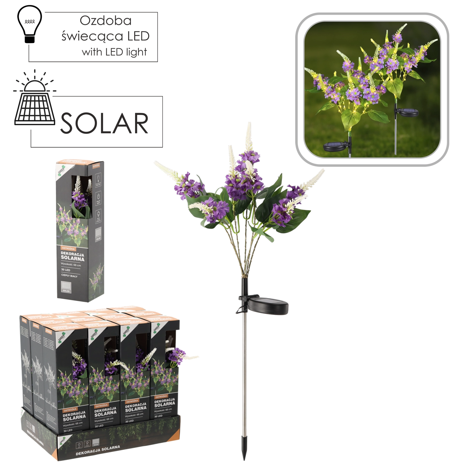 Skab en magisk stemning på terrassen, altanen eller langs havestierne. Denne solcellelampe kombinerer energieffektivt LED-lys med vedligeholdelsesfrit solcelledrevet strøm. Sæt den blot i jorden; om dagen oplades den, og efter mørkets frembrud tændes den automatisk med et behageligt, varmt hvidt lys.