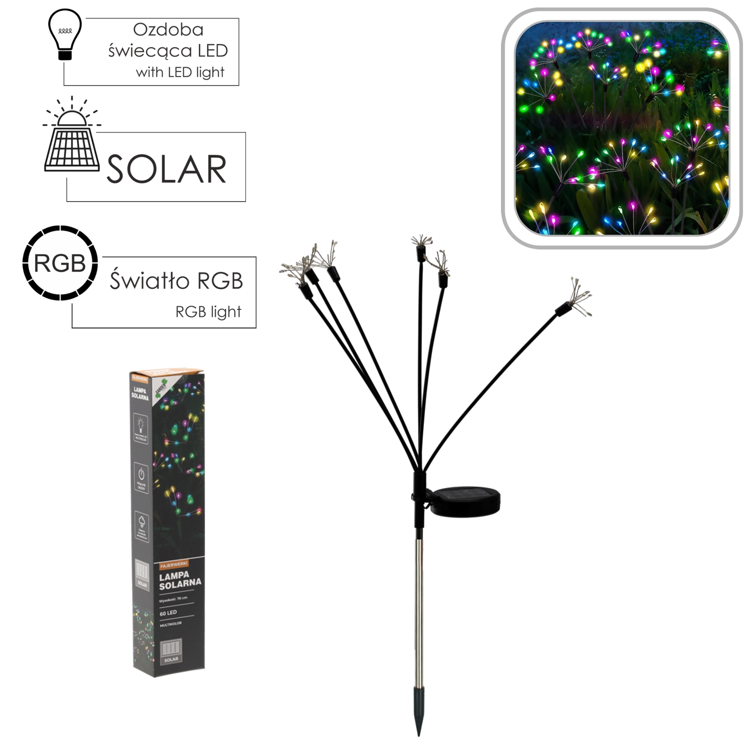 Solcelle-have-lampe 70 cm med fyrværkerieffekt, 60 LED multicolor