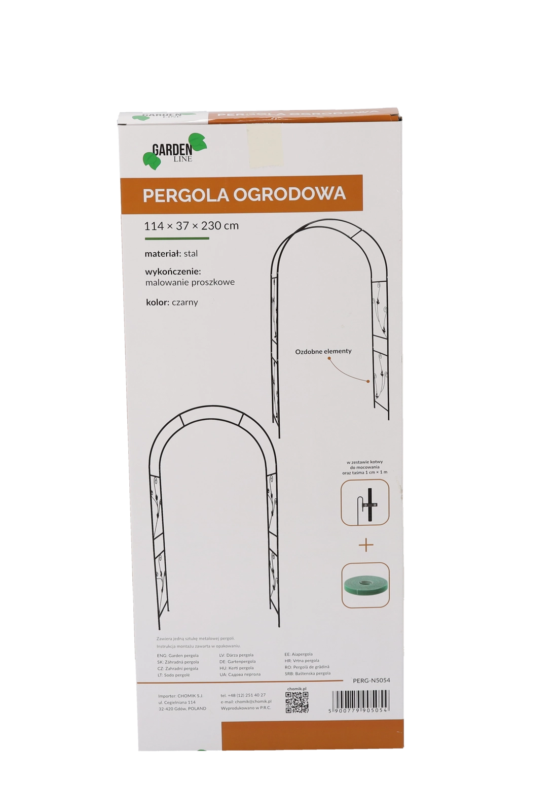 Metalrammen med pulverlakering er vejrbestandig og let at vedligeholde. Takket være jordankrene står den stabilt, selv når planterne vokser frodigt. Monteringen er intuitiv og hurtig, så du kan opstille pergolaen uden specialværktøj.