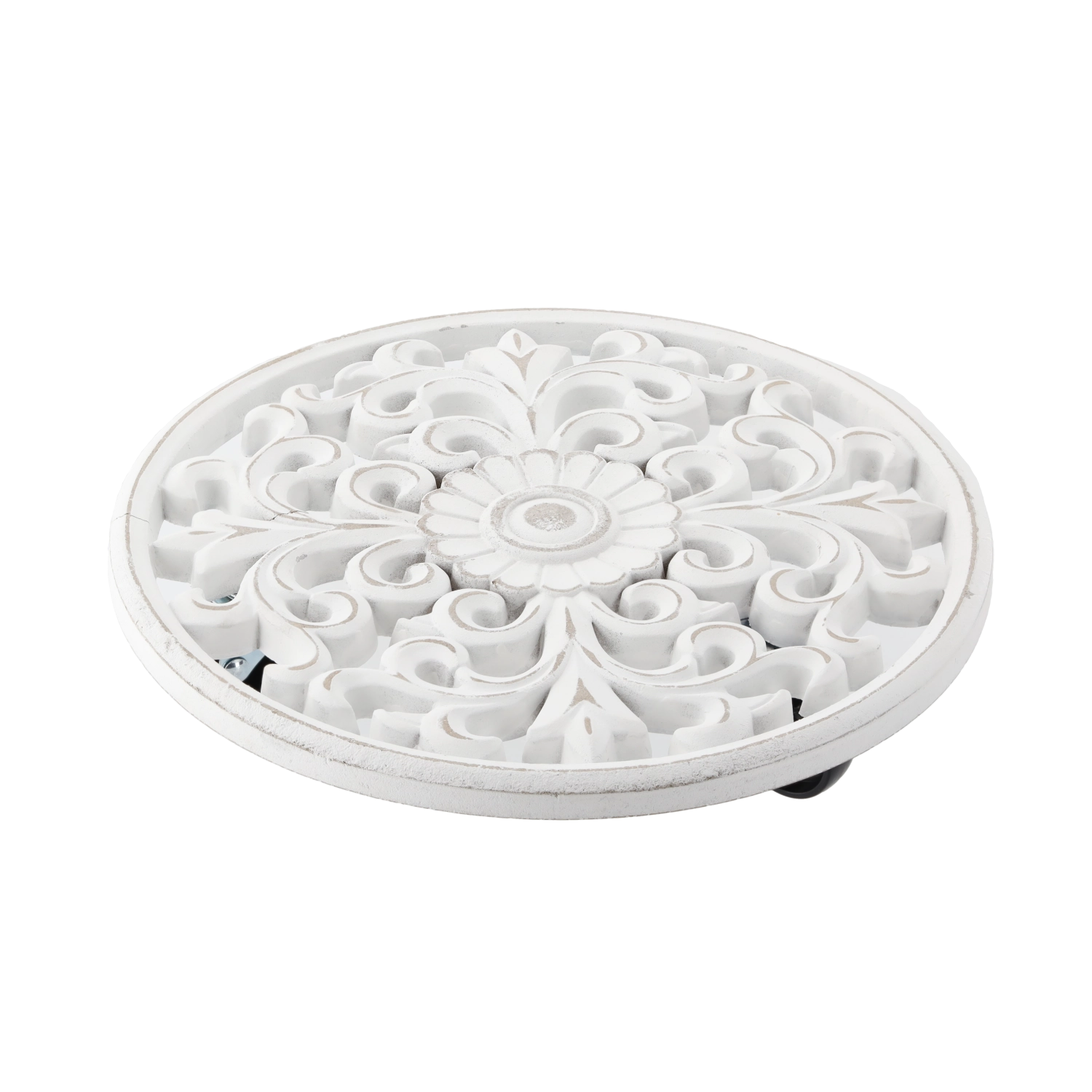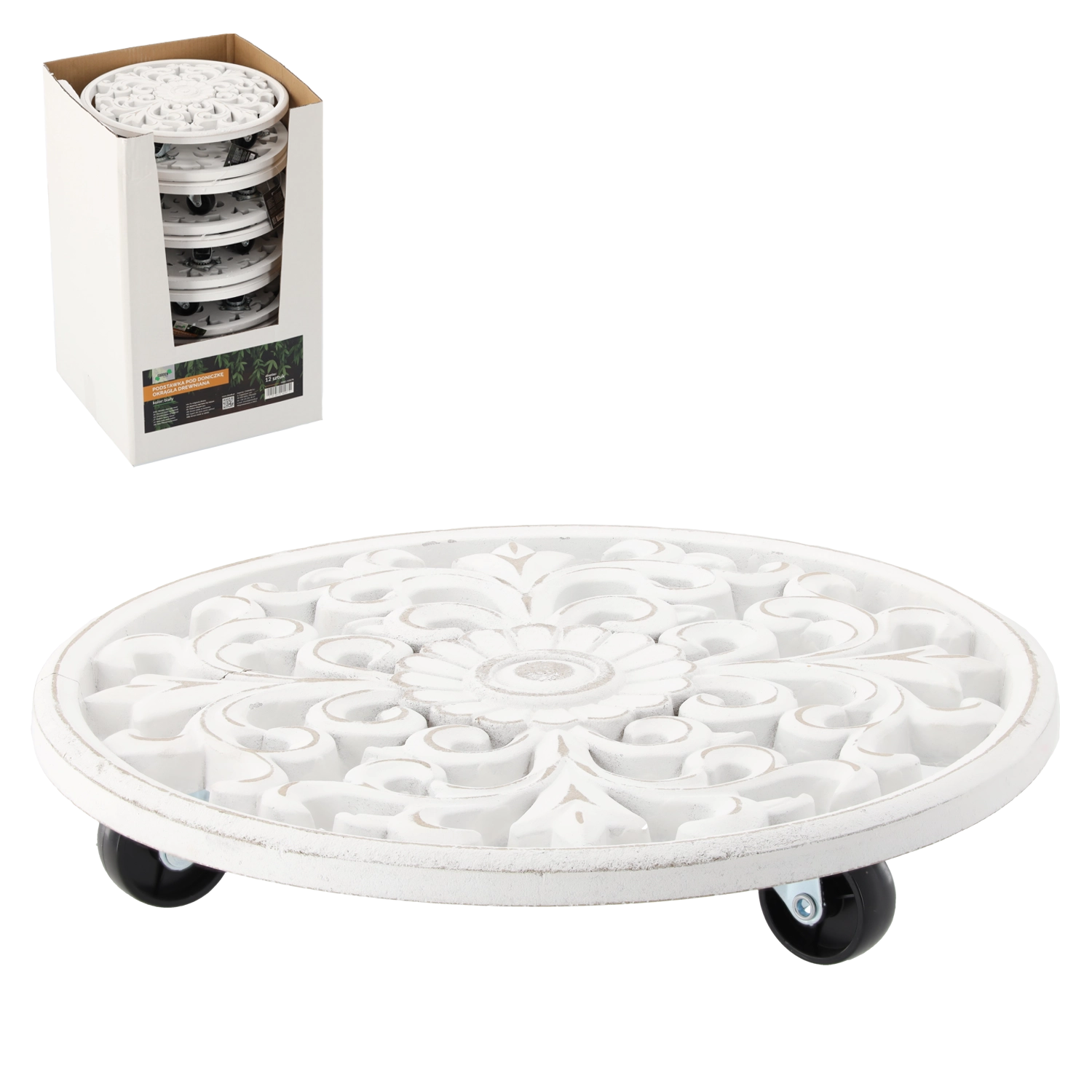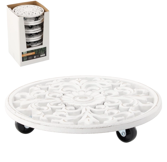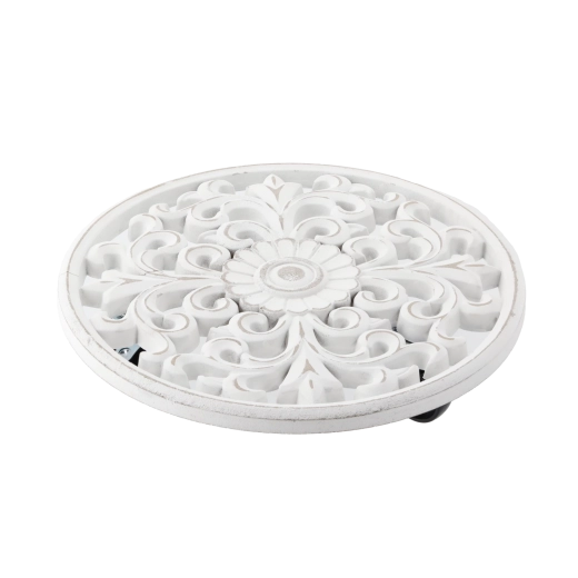 Elegant og praktisk rundt underlag i træ i hvid farve beskytter overflader mod fugt og snavs og fremhæver samtidig skønheden ved dine planter. Takket være den minimalistiske design, den solide trækonstruktion og den universelle diameter på 29 cm er den ideel til både indendørs og udendørs brug.