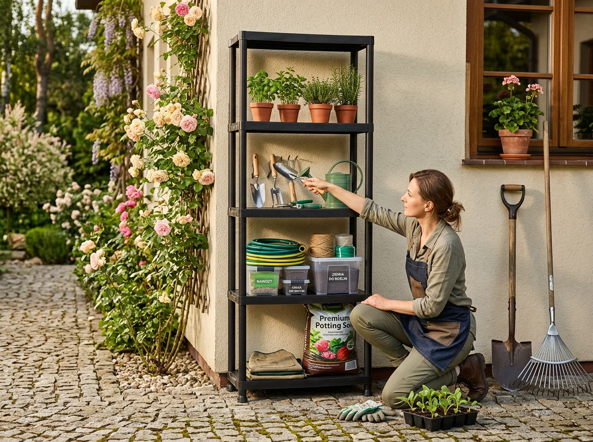Reolen er ideel til garage, bryggers, kælder og til haveudstyr. Takket være plastudførelsen tåler den fugt, er let at rengøre og nem at flytte. Enkel montering uden specialværktøj sparer tid – reolen sættes op på få øjeblikke.