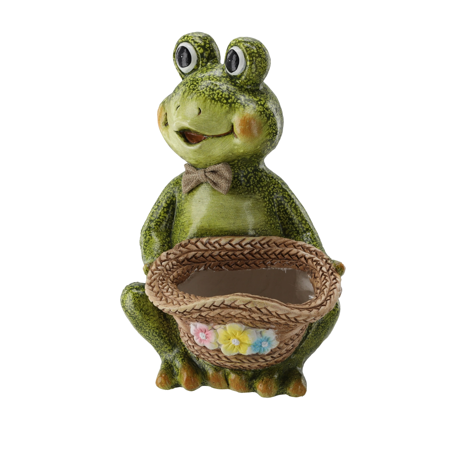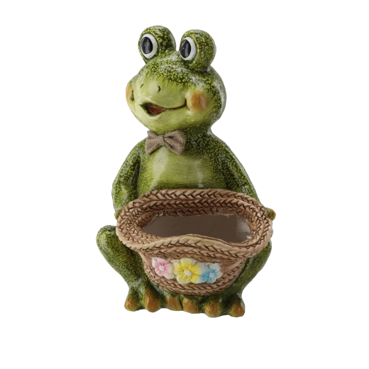 Giv din terrasse eller have et legende præg – denne havekrukke formet som en frø med hat kombinerer originalt design og praktisk anvendelse. Takket være det holdbare materiale og den stabile konstruktion er den ideel til udendørs brug og tager sig flot ud med blomster såvel som mindre buske.