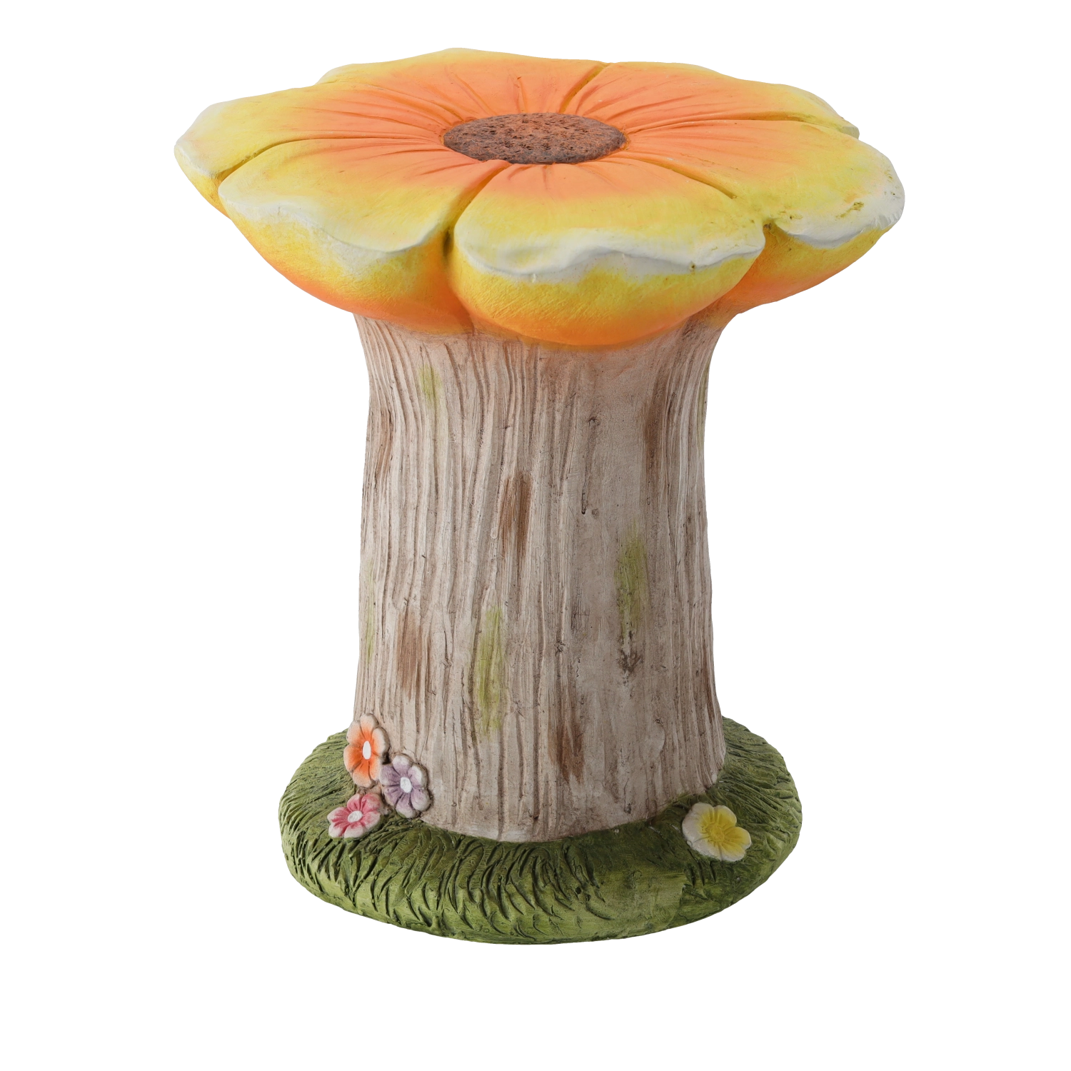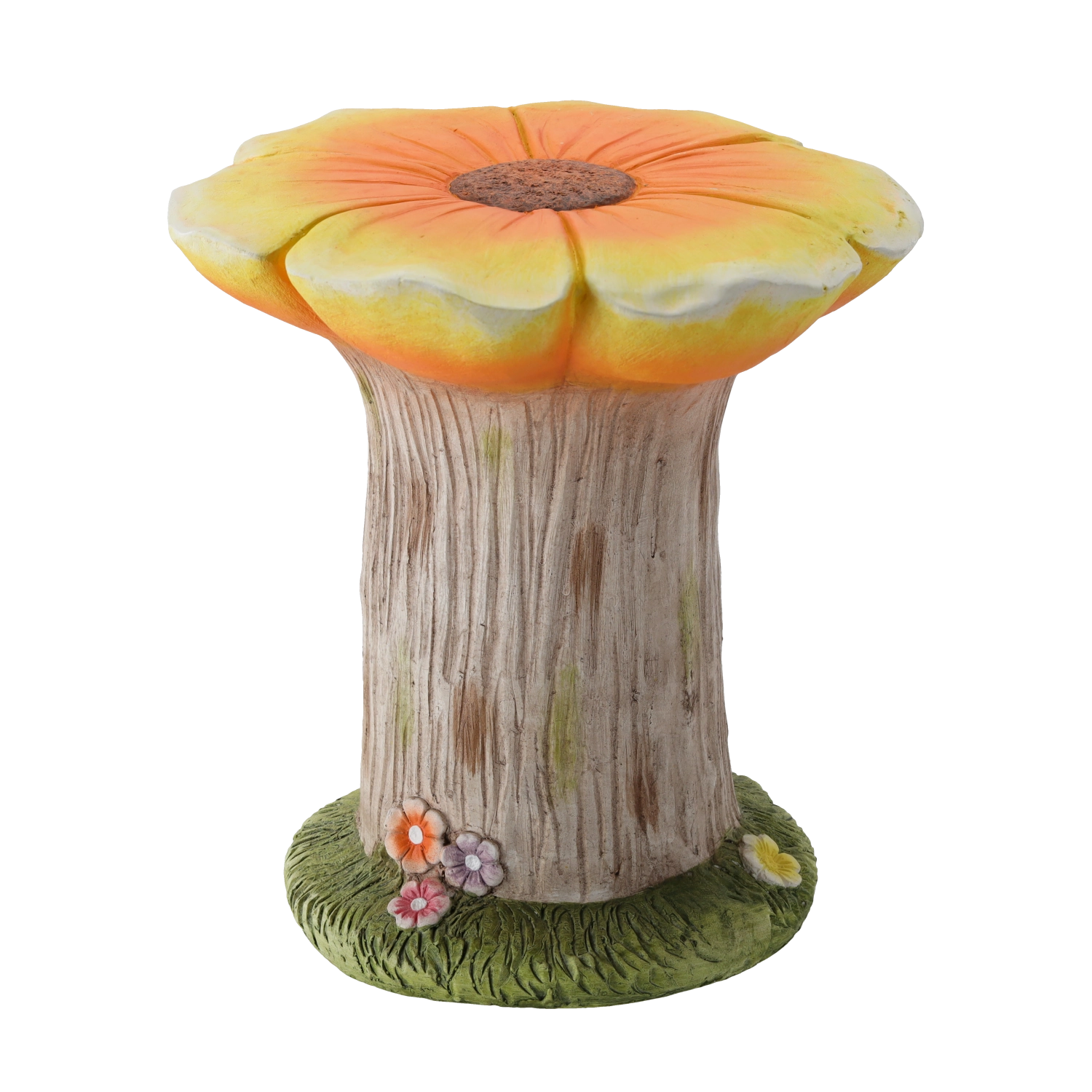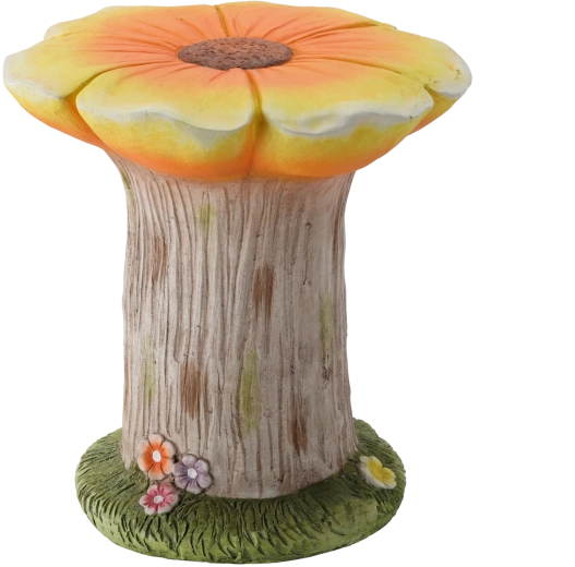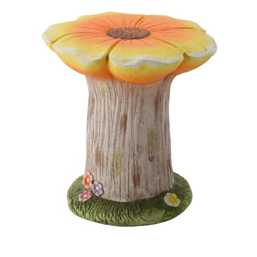 Denne originale haveholder i blomsterform forener æstetik og funktionalitet. Den realistiske træstruktur, den malede blomst i orange nuancer og den grønne base med små blomster virker naturlig og stilfuld. Takket være de kompakte mål 31 × 30,5 × 33 cm passer den også til mindre arealer som altaner eller terrasser.