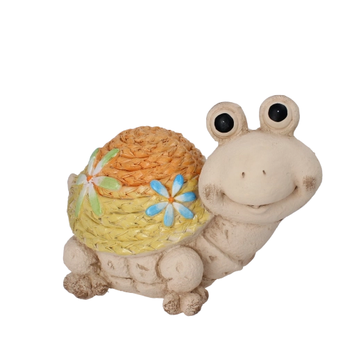 Giv din have et strejf af originalitet og naturlig charme med denne dekorative skildpaddefigur. Takket være det realistiske udtryk, det strikkede mønster på skjoldet og de holdbare materialer tåler den vejret og forbliver smuk i mange sæsoner. Ideel til haver, terrasser og altaner.