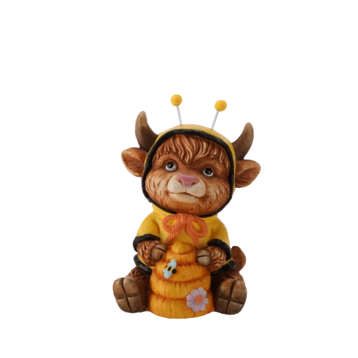 Denne charmerende figur forbinder bjergenes natur og landlig idyl – koen, der holder en bikube, symboliserer harmoni mellem natur og landbrug. Takket være det omhyggelige håndværk, teksturer og farvedetaljer bliver den et markant midtpunkt i din have eller på terrassen.