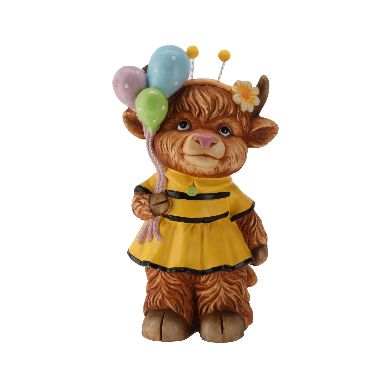 Figuren er fremstillet af et materiale af høj kvalitet, som er modstandsdygtigt over for vejrpåvirkninger, så den bevarer både farver og form hele sæsonen. Motivet med højlandskvæg og balloner giver et originalt og humoristisk præg, som glæder både børn og voksne.