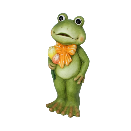 Pynt haven, terrassen eller altanen med en figur, der bringer glæde ved første øjekast. Den charmerende frø med tulipaner og en legende butterfly under halsen giver et venligt udtryk og skaber en behagelig atmosfære til afslapning. Takket være omhyggelig maling og realistiske detaljer bliver den et iøjnefaldende element ved græsplænen, stien eller blomsterbedet.