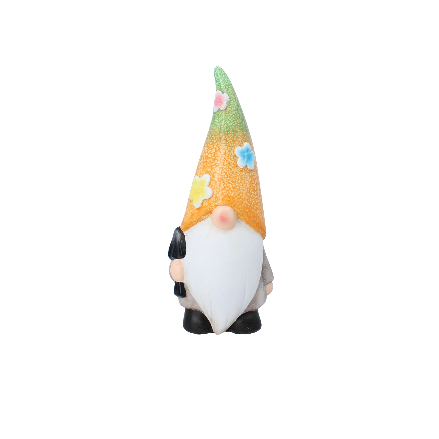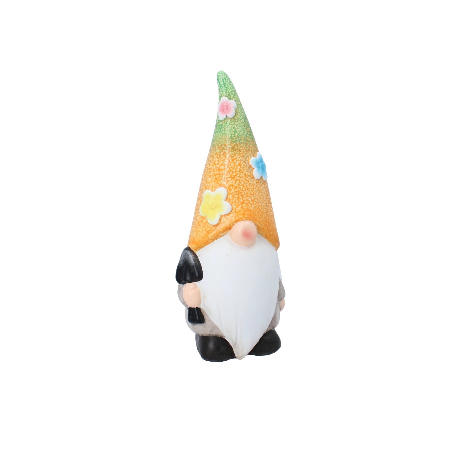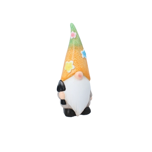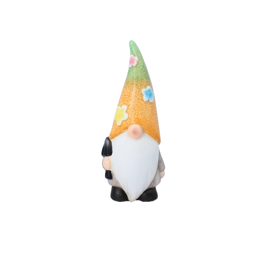 Denne charmerende havenissefigur giver straks liv til ethvert rum. Den kombinerer holdbart keramisk materiale, detaljeret maling og en farverig overflade, som skiller sig ud blandt blomsterne eller på en hylde ved indgangen.