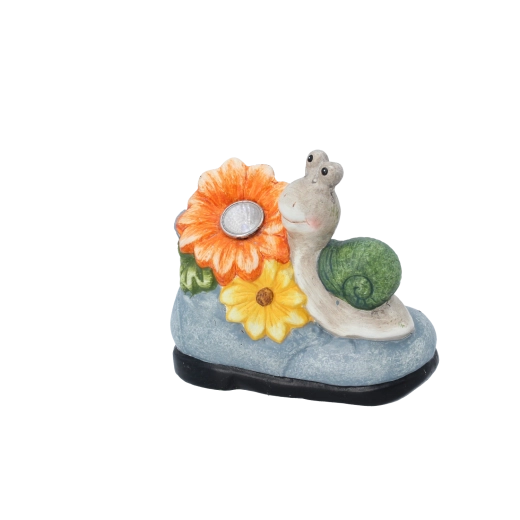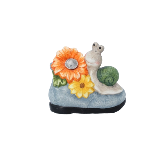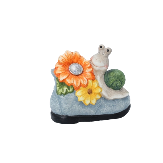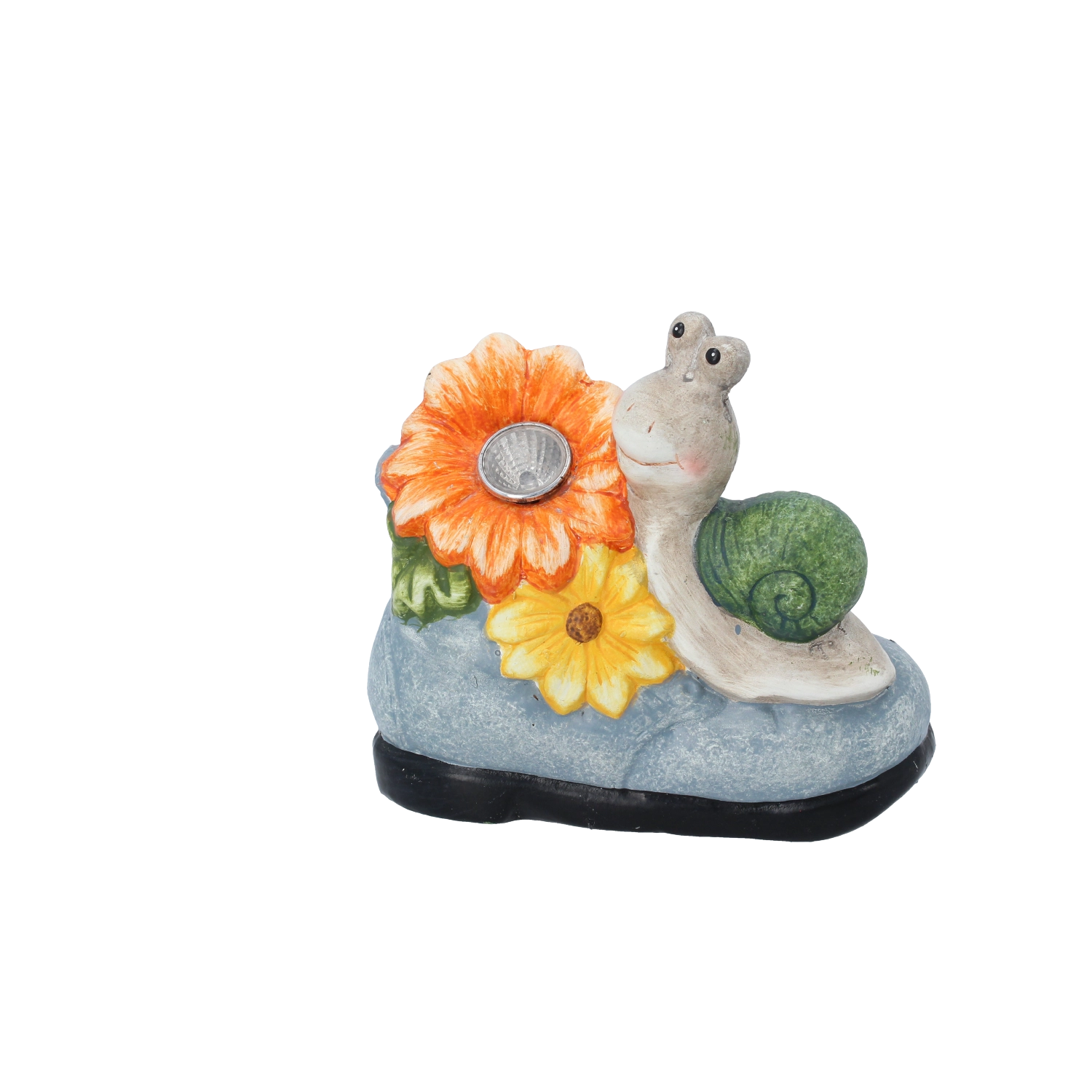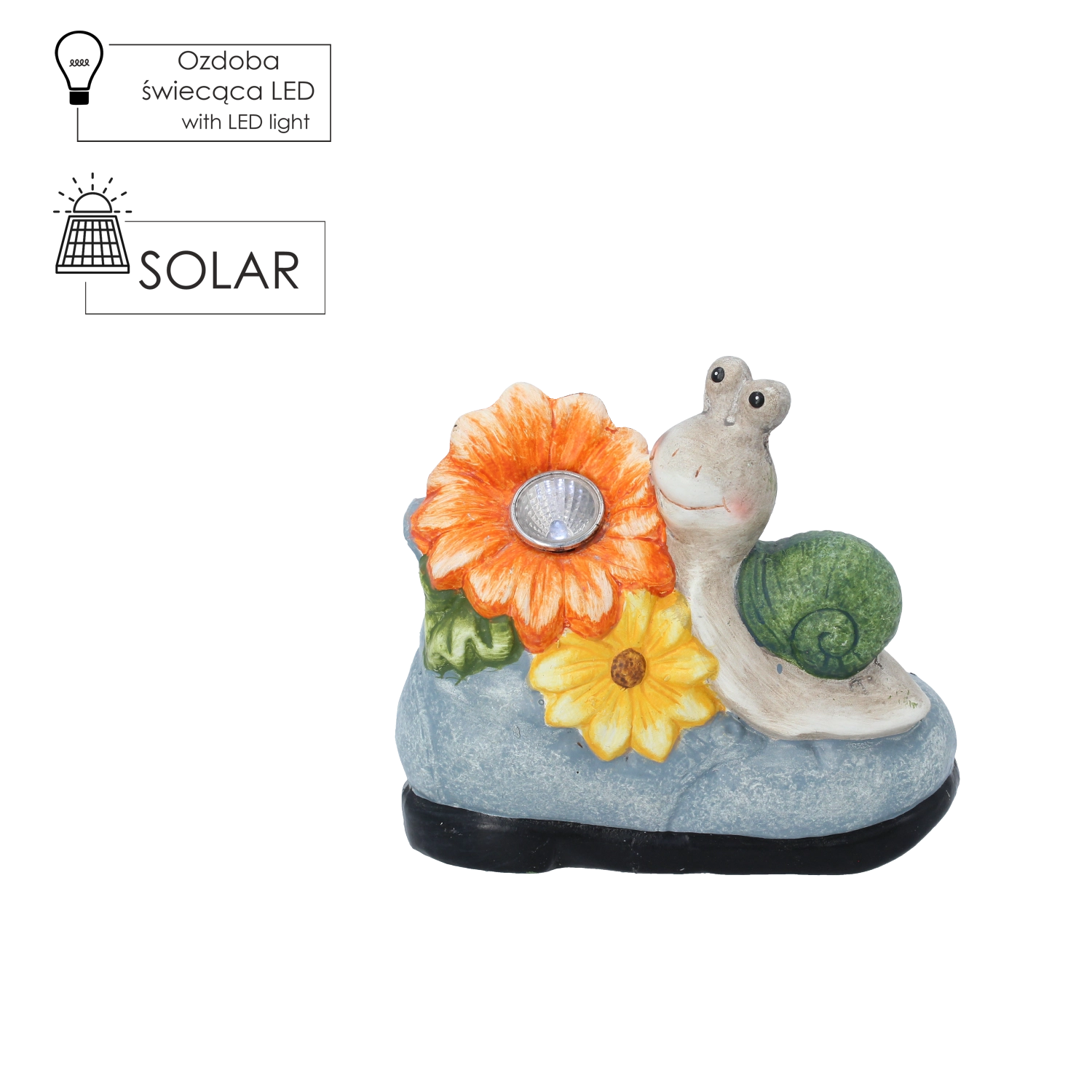 Denne dekorative sneglefigur med blomster bringer en magisk stemning til udendørsområder, især efter mørkets frembrud takket være det energibesparende LED-lys. Ideel som blikfang i bede, på terrasser, altaner eller ved husets indgang.