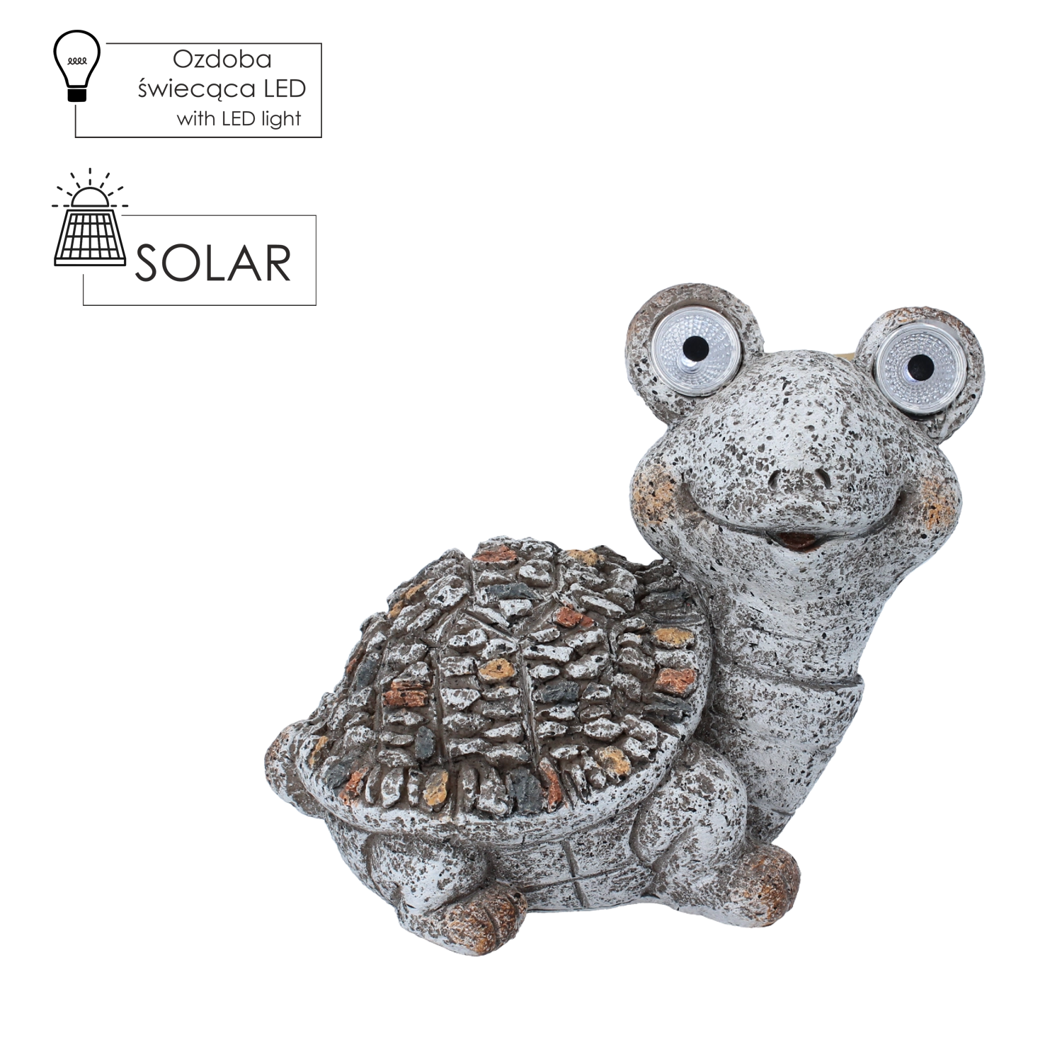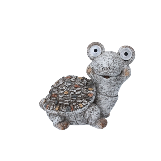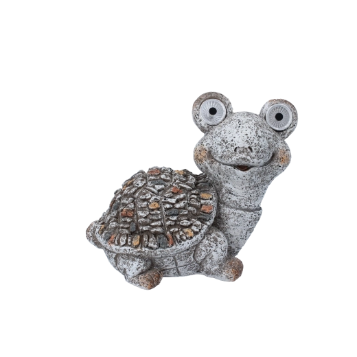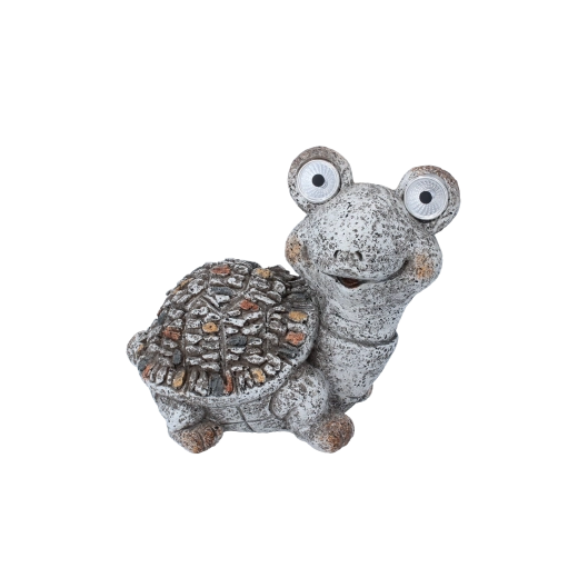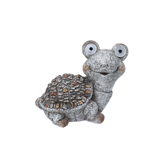 Denne legende skildpaddefigur skaber straks en indbydende stemning i dit uderum. Det integrerede solpanel oplader batteriet om dagen, og LED-dioderne i øjnene tænder automatisk efter mørkets frembrud, så du hverken behøver kabler eller stikkontakter. De kompakte mål gør den nem at placere på trin, vindueskarm, kantsten, altankasse eller bed.