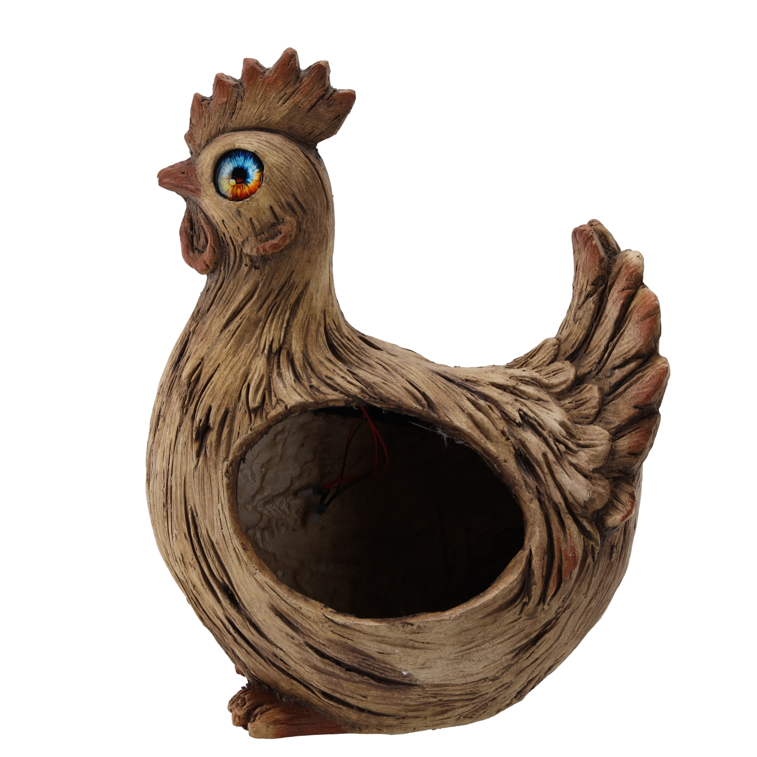 En stilfuld hanefigur med hul krop til små planter, krydderurter eller dekorationer bliver et markant fokuspunkt i din have. Takket være to varmhvide LED i øjnene skaber den en behagelig stemning efter mørkets frembrud og øger områdets æstetiske værdi.