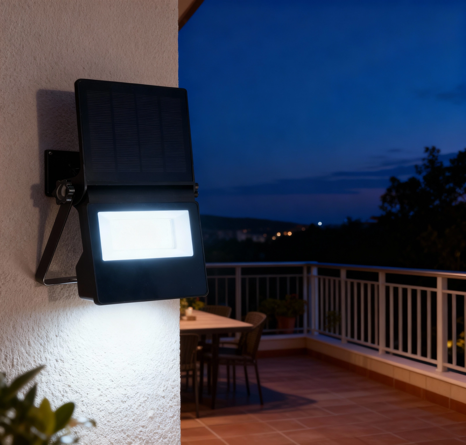 Kompakt solcelledrevet LED-armatur med bevægelsessensor leverer klart hvidt lys op til 750 lm uden behov for el. Takket være solpanelet 5 V / 1,8 W og batteriet 3,7 V 1500 mAh er det ideelt til belysning af indgange, terrasser, gange og garager. 45 SMD LED, kold hvid 4000–8000 K, IP44 til udendørs brug og sensorrækkevidde 5–8 m sikrer driftssikker funktion hver nat.