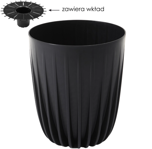 Den elegante blomsterkrukke Mira 30 cm fra LAMELA er fremstillet af 100% genanvendt plast. Den byder på et moderne vertikalt design og er et let og holdbart valg til både inden- og udendørs brug. Takket være den integrerede indsats opretholdes optimal fugtighed, og rødderne beskyttes mod overvanding, samtidig med at den spar­er på substratet og gør vedligeholdelsen lettere.