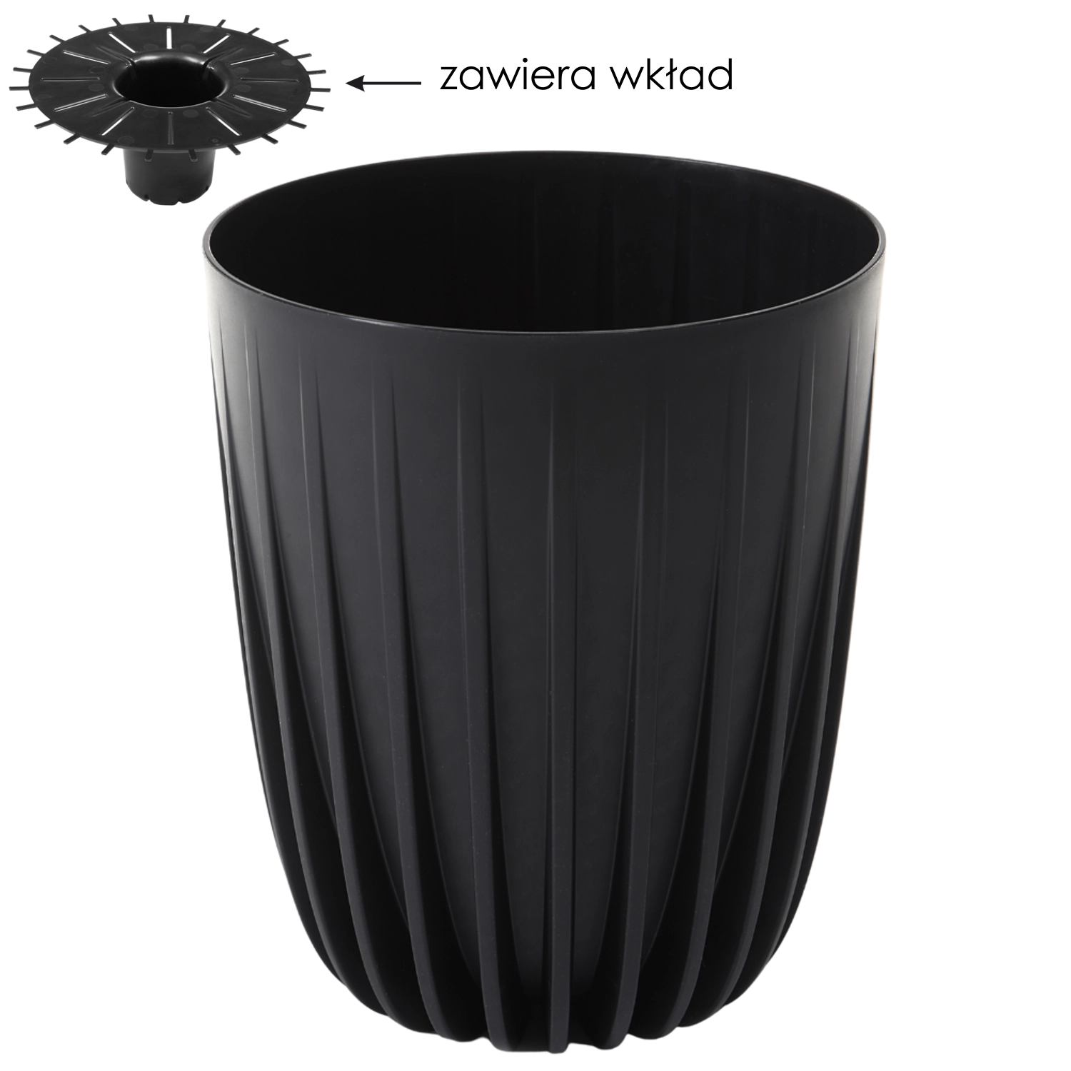 Blomsterkrukken Mira i sort kombinerer et tidløst look med praktiske funktioner. Den er lavet af 100% genanvendt plast og er dermed miljøvenlig, samtidig som den er modstandsdygtig over for mekaniske skader, fugt og frost. De vertikale riller og den tilspidsede form passer perfekt til moderne og skandinaviske interiører, på altanen og terrassen.