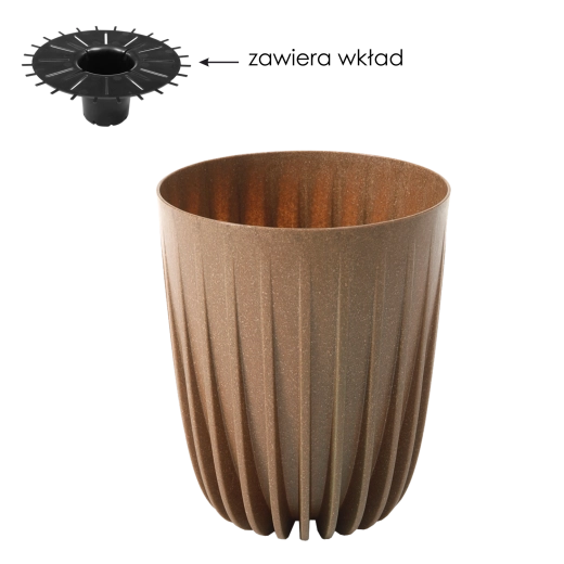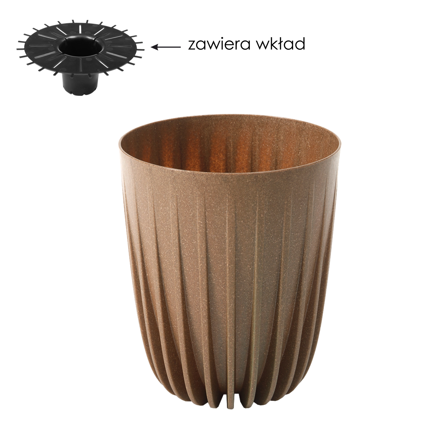 Blomsterpotten MIRA ECO Wood forener naturligt udseende og praktisk funktion. Trædekoren med et moderne geometrisk mønster giver ethvert rum et unikt præg, mens den dybere form skaber ideelle betingelser for planter med et rigt rodsystem. Takket være det robuste materiale egner den sig både til lejlighed og til altan eller terrasse.