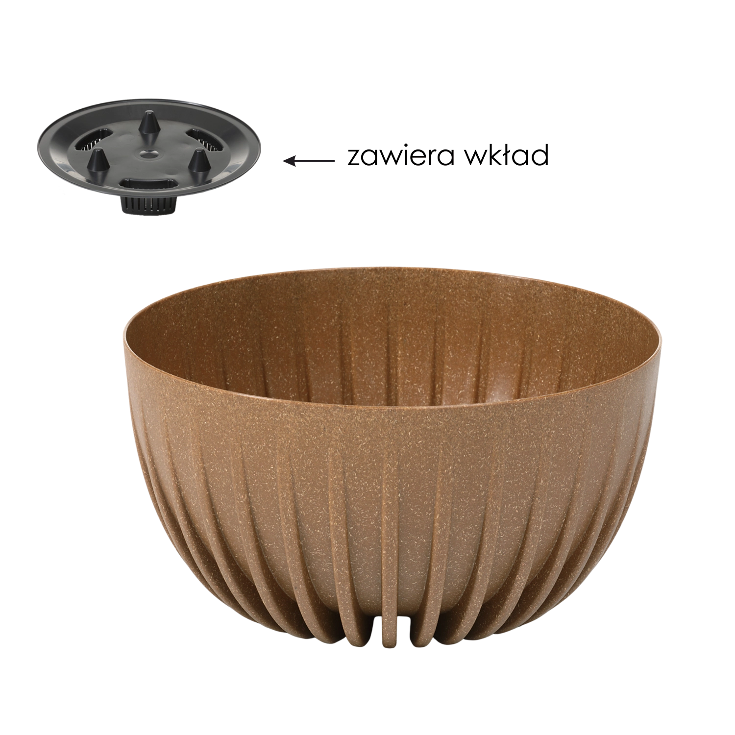 En stilfuld blomsterskål i naturfarve, der kombinerer miljøvenlig sammensætning med op til 40 % træspåner, lav vægt, vejrbestandighed og moderne design. Inkluderer en indsats for effektiv udnyttelse af jord og vanding samt en aftagelig prop for sikker afledning af overskydende vand ved udendørs brug.