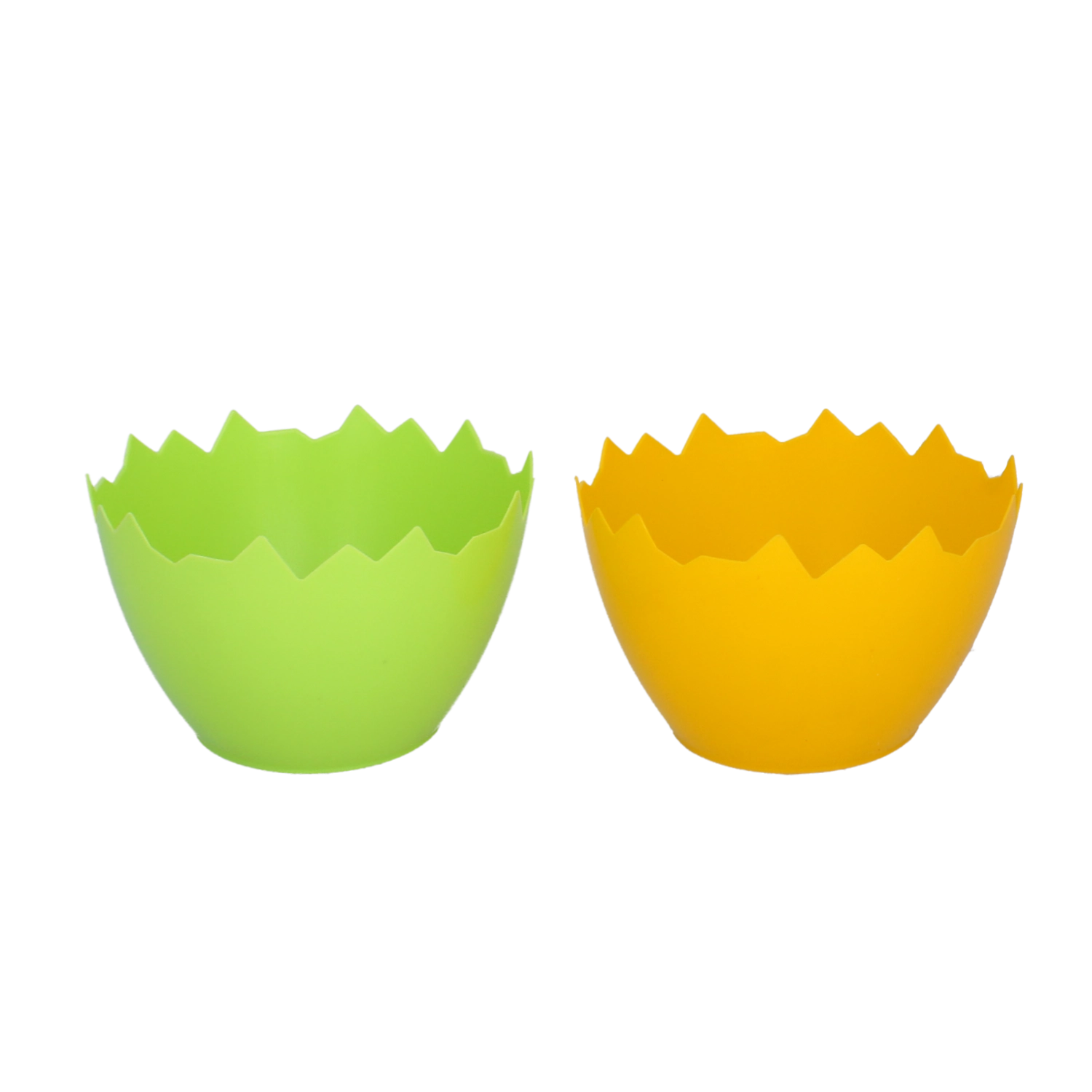 Stilfuld dekoration til forår og påske: plastisk skjuler til blomster med en diameter på 15 cm formet som en sprækket æggeskal giver dit interiør en frisk forårsstemning. Takket være de pastelfarver, det lette og holdbare plastmateriale og den nemme vedligeholdelse er den ideel til blomsterarrangementer, dyrkning af karse og som midtpunkt i påskepynten.