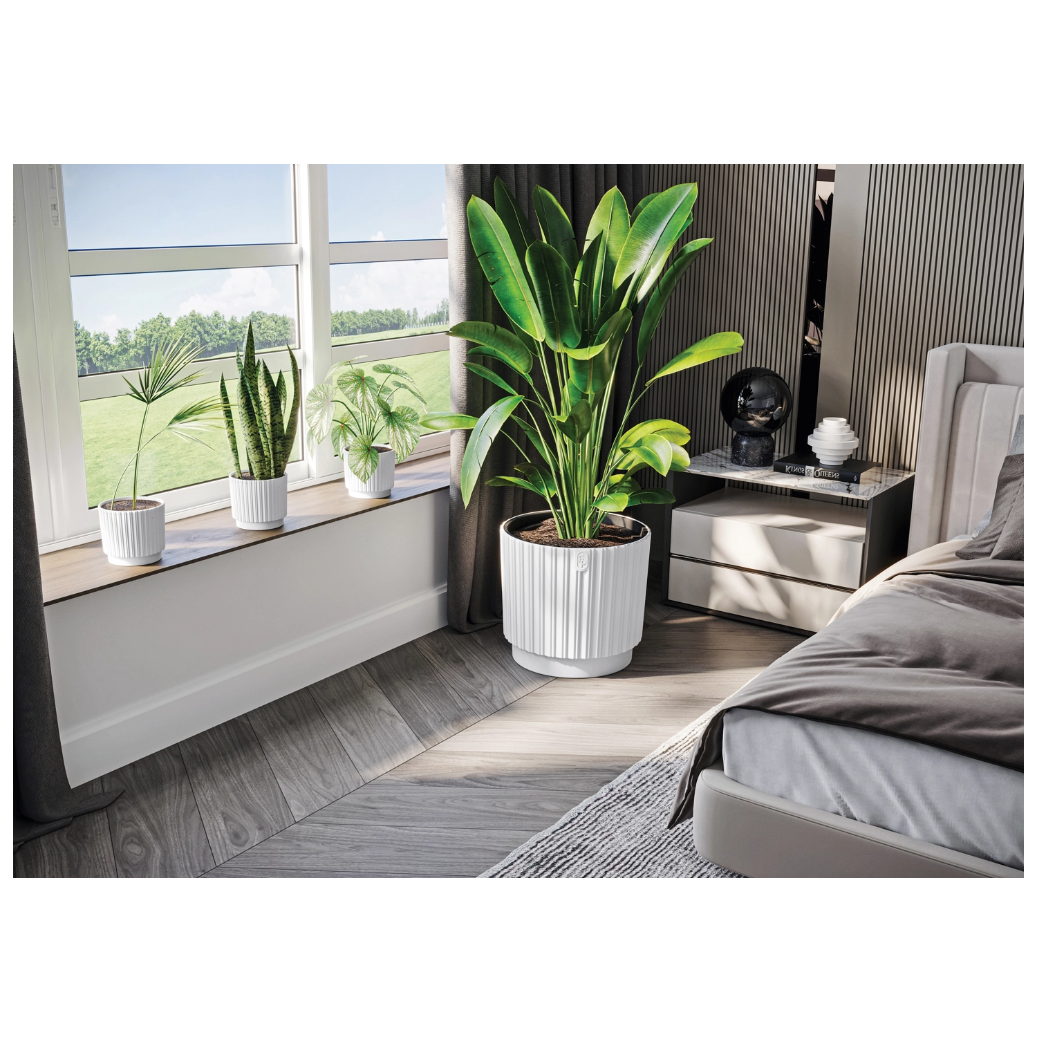 Takket være modstandsdygtighed over for frost og vejrpåvirkninger egner den sig til brug i hjemmet, på altanen og på terrassen. Den enkle cylindriske form passer til mange indretningsstile og lader dine planters skønhed træde frem.
