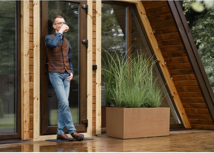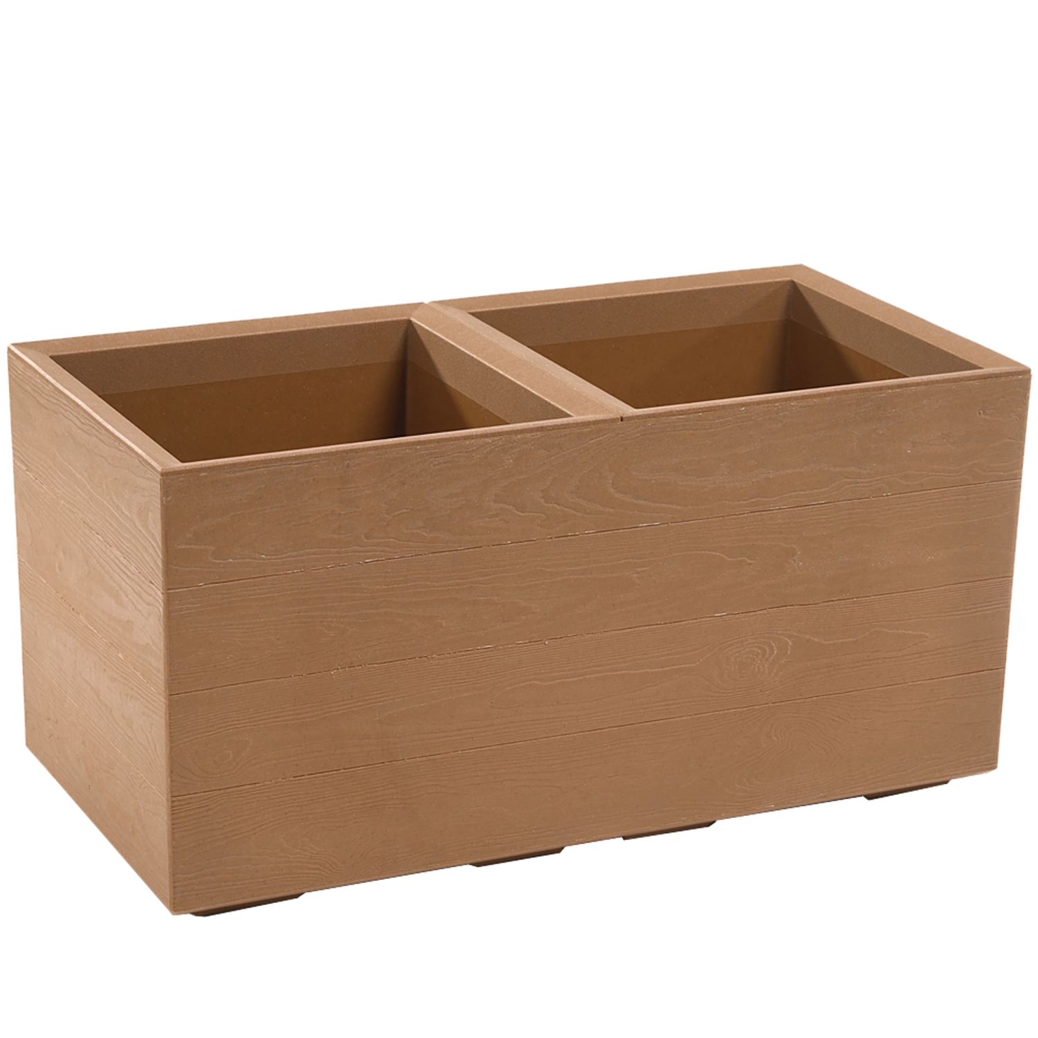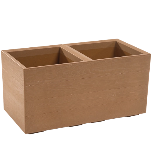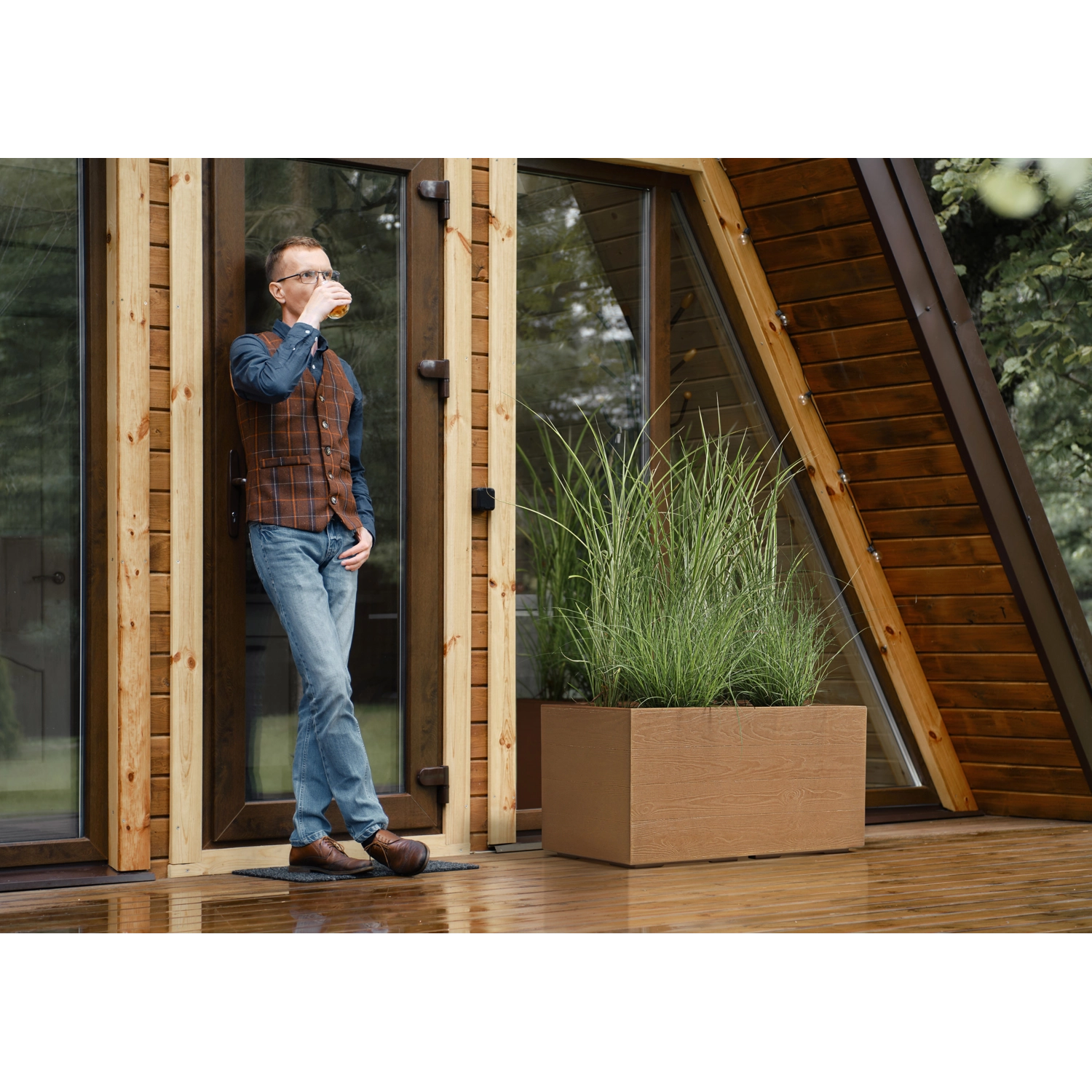 Plantekassen Karo Eco Wood forener moderne teknologi med et naturligt look. Plast med trætilsætning imiterer troværdigt træstruktur og bevarer samtidig lav vægt, nem vedligeholdelse og lang levetid. Takket være volumenet på 72 l får dine planter rigelig plads til sund vækst.