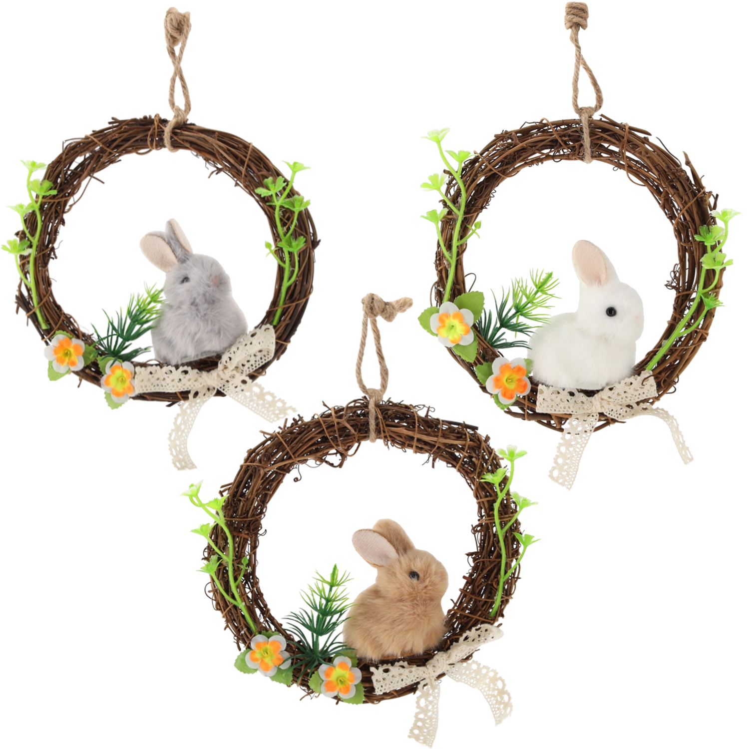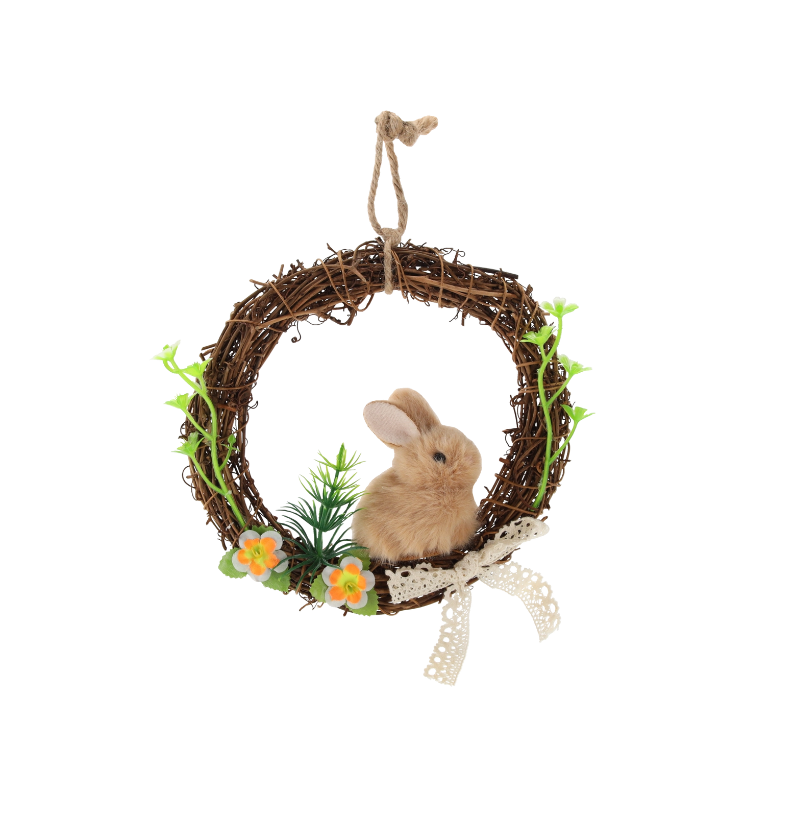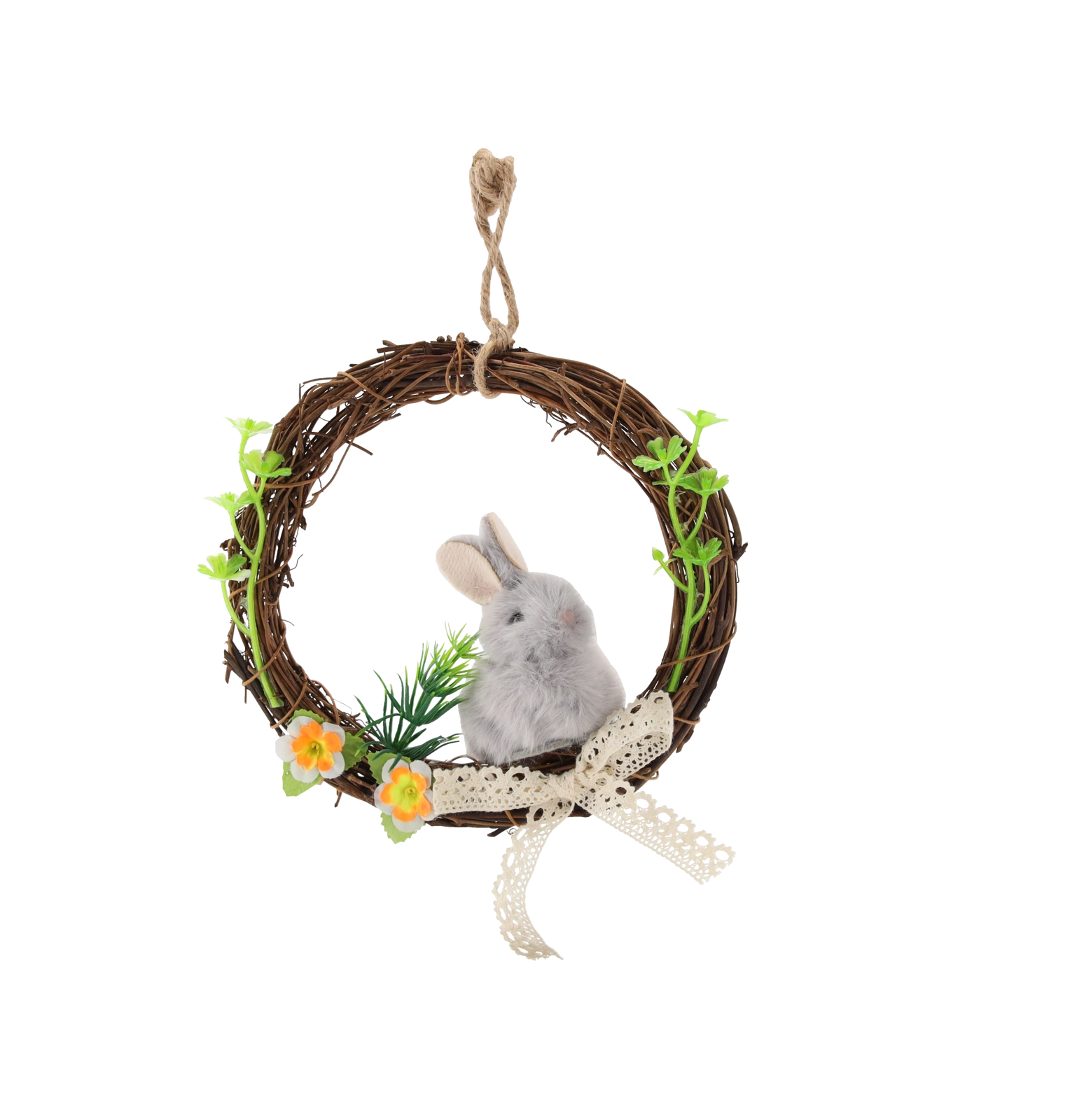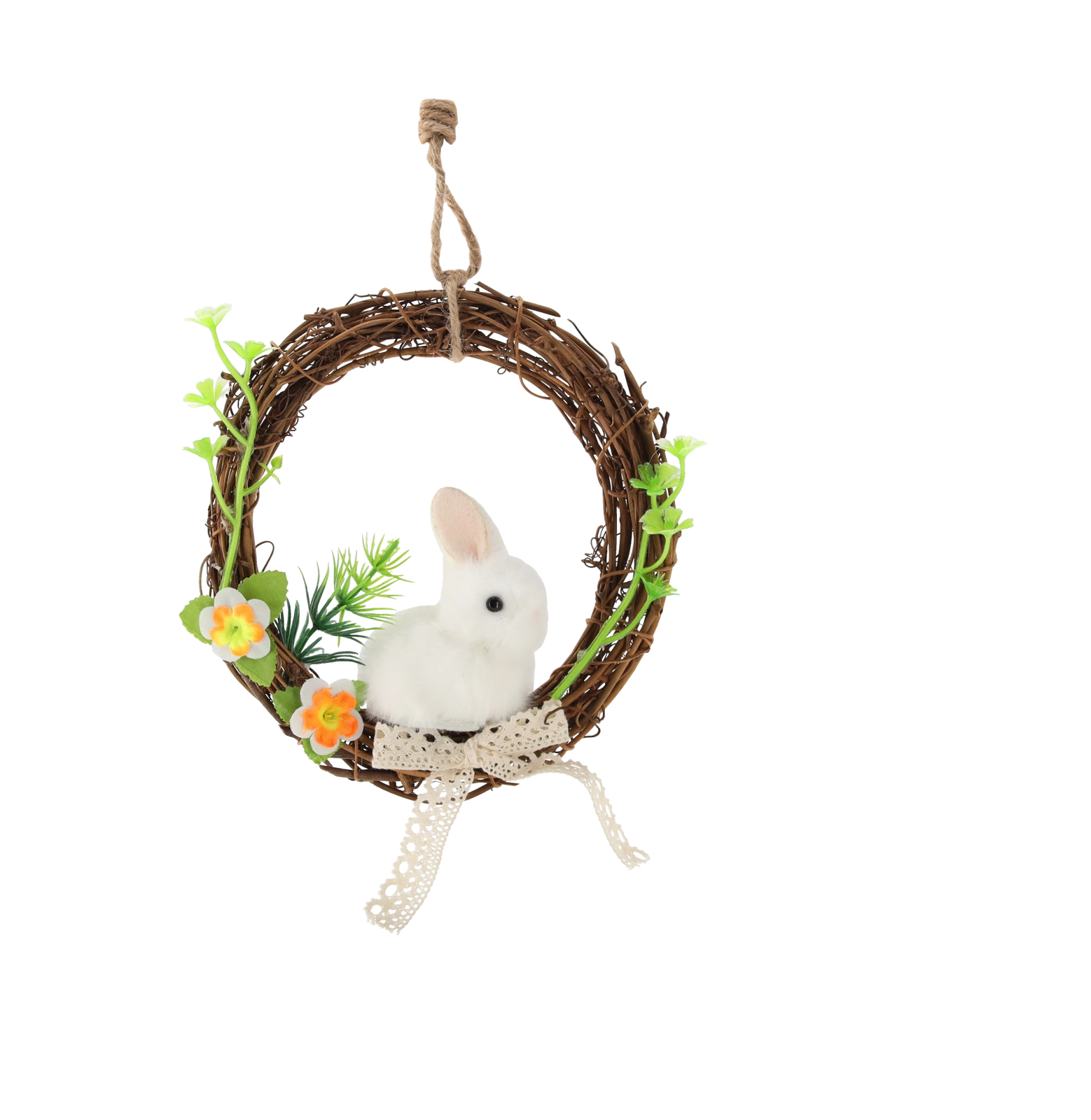 Den bløde plyskanin giver kransen et legende udtryk og gør den til en perfekt påskeaccent i entréen eller stuen.