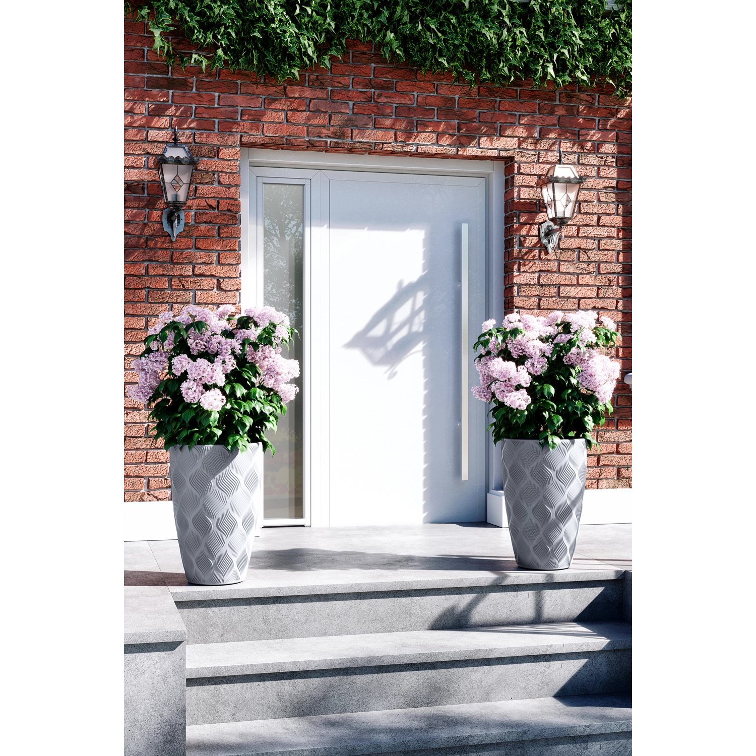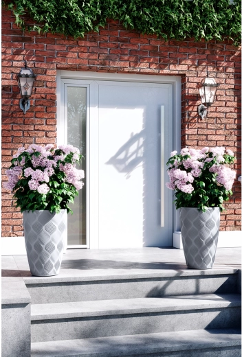 FLOW Slim plantekrukken i moderne platinfarve kombinerer elegant udseende og funktionalitet. Den unikke riflede 3D-overflade giver et designpræg, der passer til både moderne og klassiske rum, på terrasser, altaner og i stuer. Den matte overflade er let at vedligeholde og modstandsdygtig over for ridser.