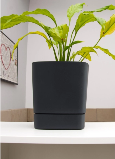 Den moderne blomsterpotte med underskål CLIMA i størrelsen 16 × 16 cm og en højde på 15,5 cm byder på minimalistisk design, elegant mat overflade og modstandsdygtighed over for frost og UV-stråling. Den er fremstillet af genanvendt plast, og takket være den integrerede aftagelige underskål beskyttes planterne mod overvanding. Ideel til indendørs og udendørs brug — til vindueskarme, altaner og terrasser.