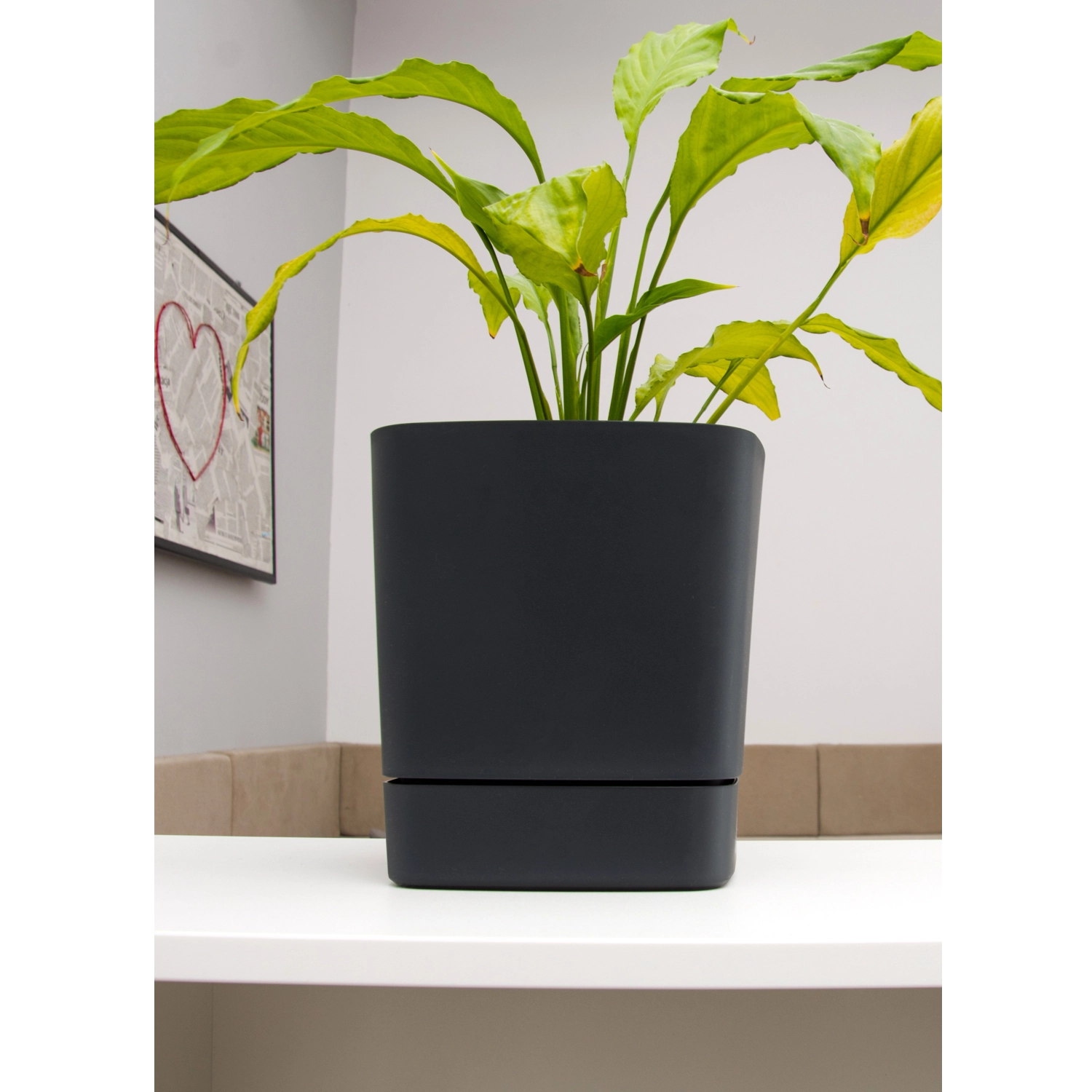 Blomsterpotte med underskål Clima 16 × 16 cm, sort, mat