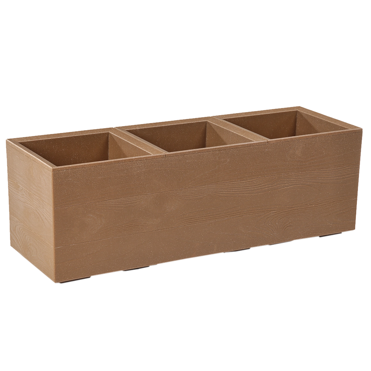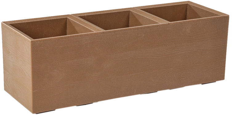 Det holdbare plastmateriale med andel af genanvendt træ (op til 40 %) sikrer farvebestandighed og modstand mod frost og UV-stråling. Det rummelige volumen på 39 liter og den aflange form giver rigelig plads til prydgræsser, krydderurter og blomstrende planter.