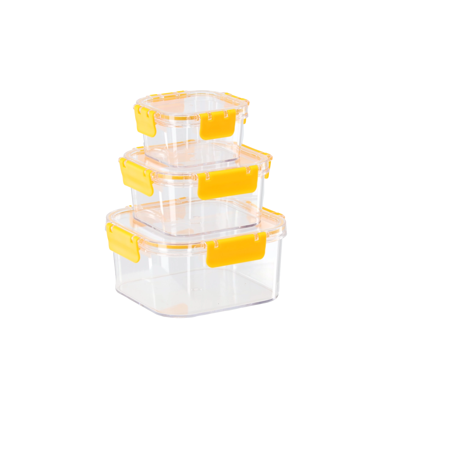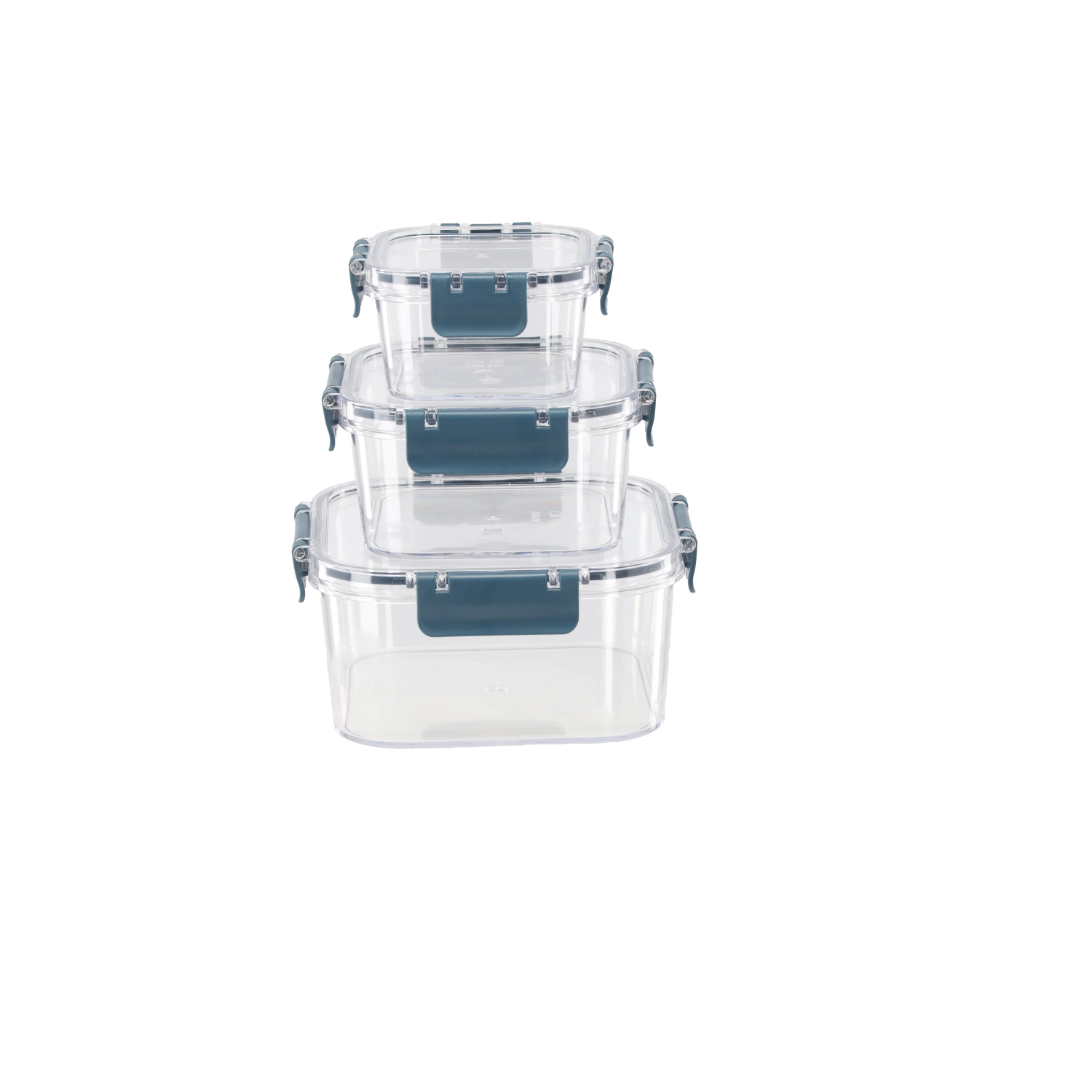 Praktisk sæt med tre firkantede beholdere på 0,4 l, 0,9 l og 1,8 l til overskuelig opbevaring af mad både hjemme og på farten. Takket være gennemsigtigt design har du altid overblik over indholdet, BPA-fri plast sikrer sikker kontakt med fødevarer, og tætsluttende låg bevarer friskheden længere. Beholderne er egnede til mikroovn, fryser og opvaskemaskine, og deres kompakte firkantede form sparer plads i køleskab og skabe.