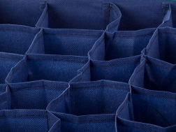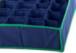 Denne praktiske organisator tilbyder en let måde at holde dit undertøj pænt organiseret. Dens konstruktion muliggør effektiv organisering selv i de mindste rum, og stabiliteten sikres af de forstærkede sidevægge. Desuden kan den foldes sammen for minimal pladsoptagelse ved længere tids opbevaring eller rejser.