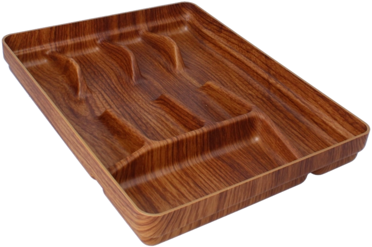 Hold dit køkken ryddeligt og elegant med en praktisk bestikorganizer med 5 rum. Det holdbare plast, de kompakte mål 26 × 33,5 × 4,5 cm og den stilfulde brune (valnød) farve passer perfekt i de fleste skuffer og interiører.