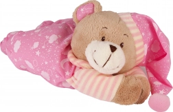 Denne yndige bamse er en skøn ledsager både dag og nat. I sit lyserøde pyjamas er den en ven, der aldrig løber væk, og er den perfekte gave til de allermindste. Bamsen udvikler ikke kun barnets fantasi, men kan også hænges op, så du nemt kan fastgøre den på tremmeseng eller barnevogn. Den spiller den beroligende vuggevise „God aften, god nat“, som hjælper dit barn med at falde i søvn.