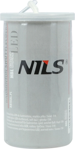 NILS badmintonfjerbolden med større EVA-base og nylonkurv giver længere levetid, bedre flyvekontrol og takket være den farvede overflade også fremragende synlighed. Det integrerede LED-lys, drevet af en knapcelle, muliggør sjov leg i skumringen eller i mørke.