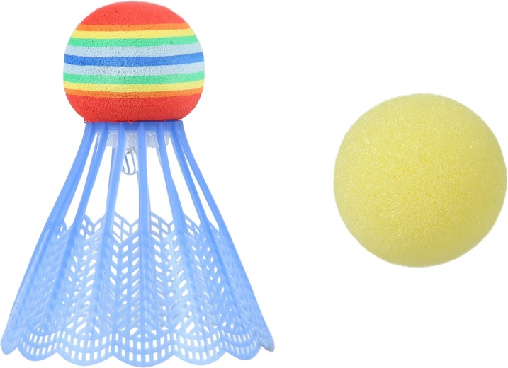 I pakken finder du også en skumbold med en diameter på 45 mm, som er lettere og langsommere end en klassisk fjerbold – perfekt til sikker leg med børn, tekniktræning og rekreativt spil.